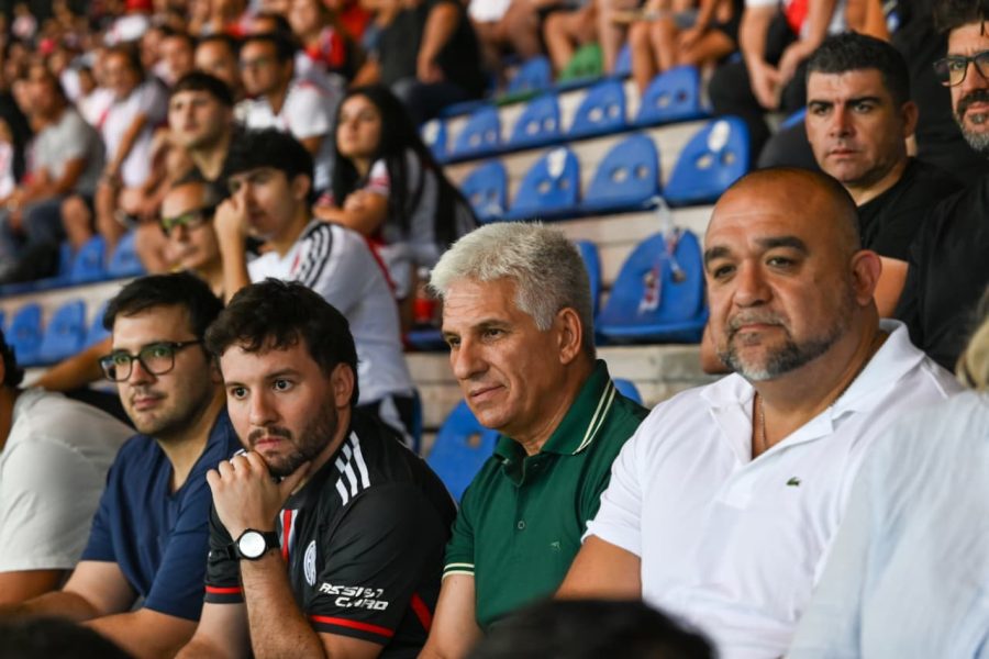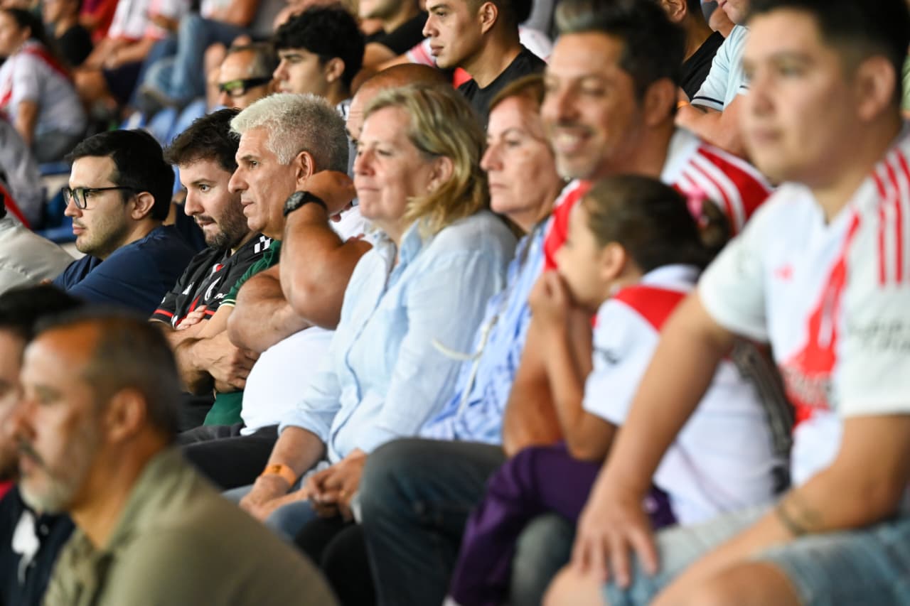 Poggi se sentó en la Platea Oeste, acompañado por la secretaria de Deportes, Adelaida Muñiz, el intendente, Maximiliano Frontera, y rodeado de simpatizantes ‘Millonarios’ que se acercaron a tomar fotos y compartir una palabra.