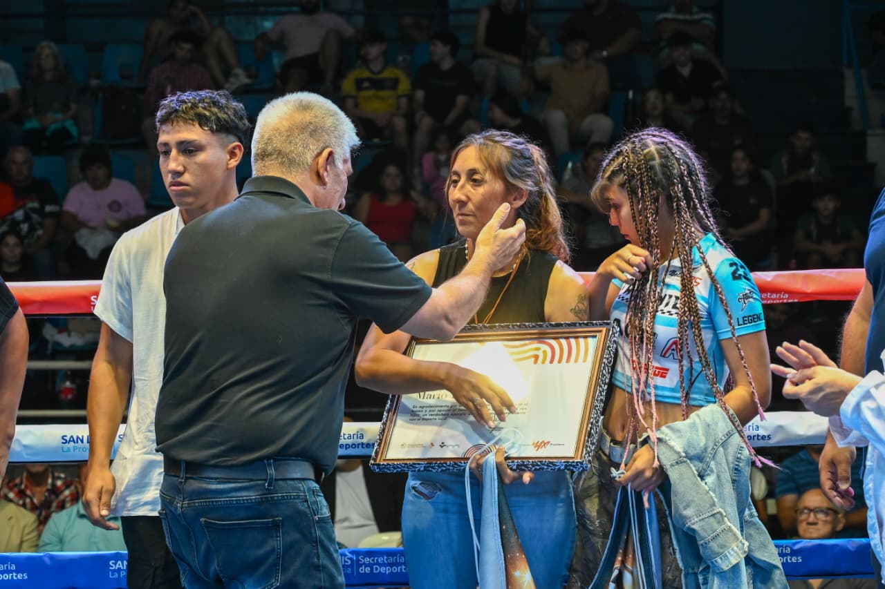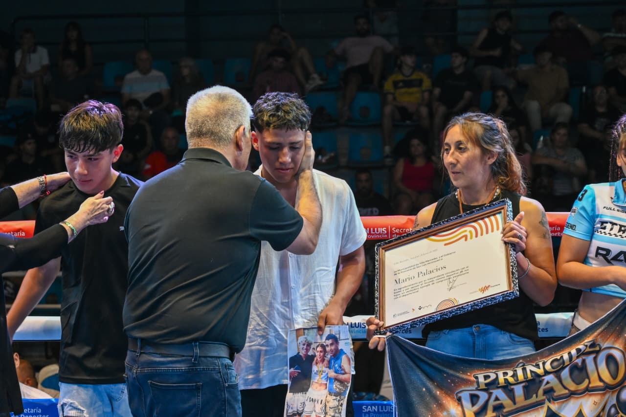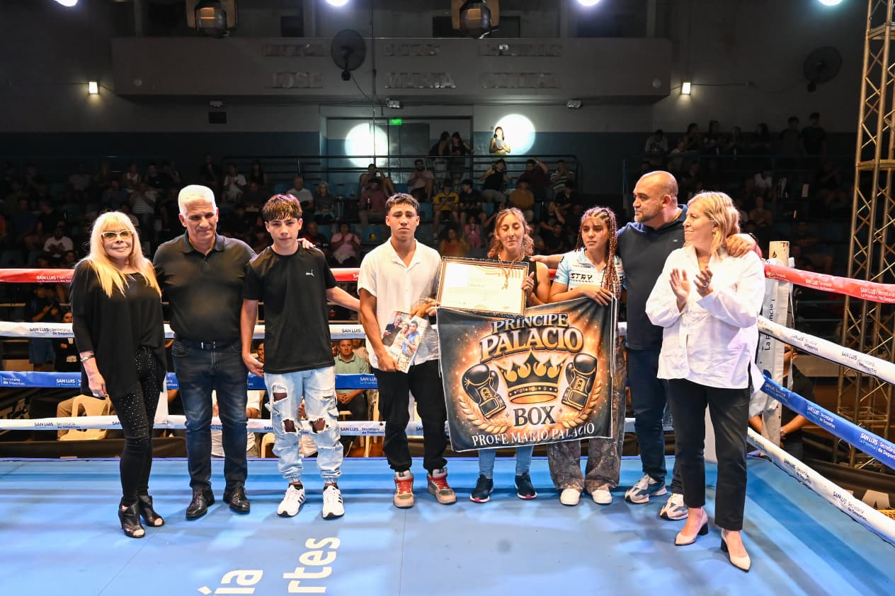 La noche dio lugar al reconocimiento por parte de las autoridades presentes a la familia de Mario Palacios, campeón provincial 2025 de boxeo amateur, cuyo padre falleciera recientemente.