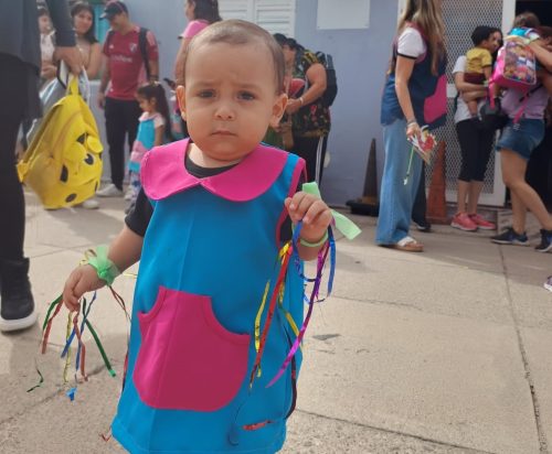 La comunidad del Centro de Desarrollo Infantil ‘Arco Iris’ celebró el carnaval. La coordinadora del CDI ubicado en el barrio Amppya, Nilda Lucero, comentó que los niños finalizaron la segunda semana de adaptación y que una mamá que integra una murga les propuso realizar la actividad para cerrar la semana de manera festiva.