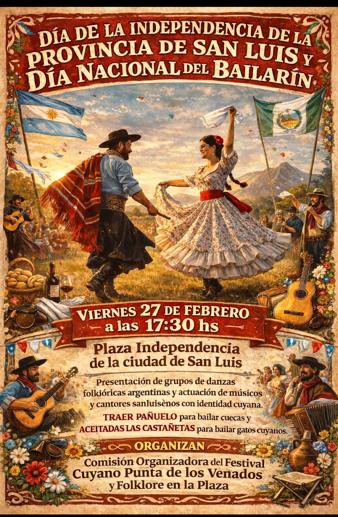 La ciudad de San Luis vivirá una tarde donde la tradición será protagonista. El próximo viernes 27 de febrero a las 17:30, la histórica Plaza Independencia será escenario del gran Encuentro de Danzas Folclóricas ‘Día Nacional del Bailarín’, en homenaje al Día de la Independencia de la provincia de San Luis.