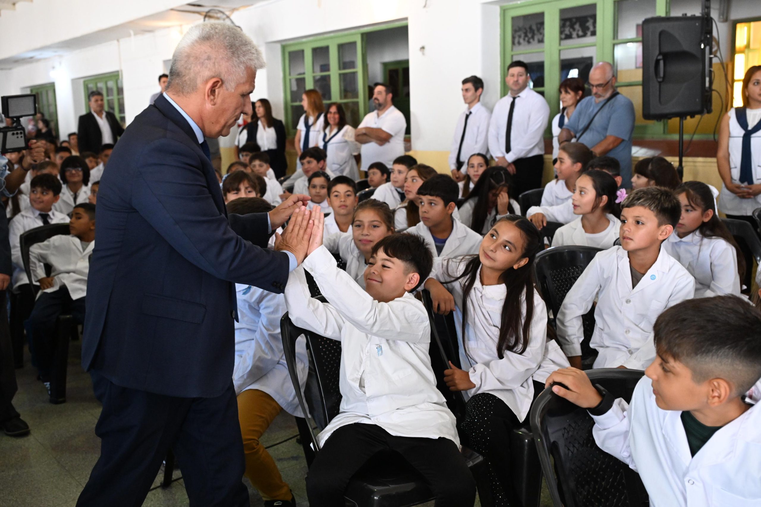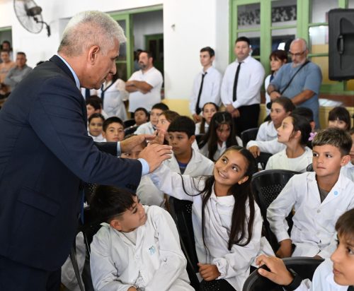 Los chicos, vestidos con su característico guardapolvo, los estudiantes de instituciones vecinas, autoridades, familiares y vecinos recibieron al Gobernador con los abrazos abiertos.