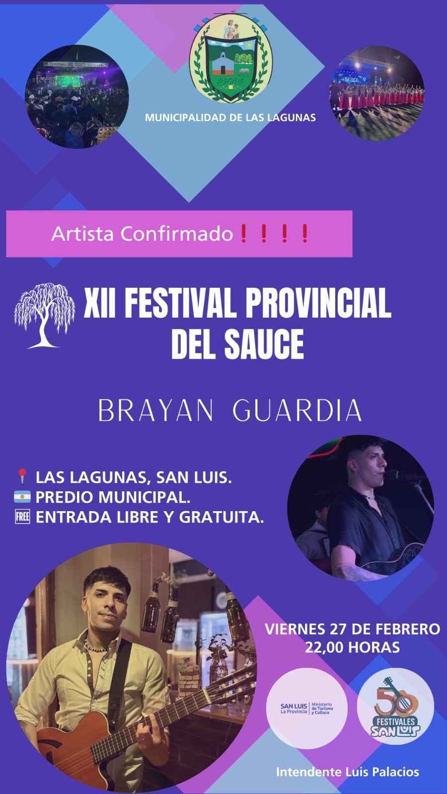 Las Lagunas, la bella localidad del departamento San Martín, llevará a cabo el 12° Festival del Sauce este viernes 27 de febrero. La jornada comenzará a las 22:00 en el polideportivo municipal, con ingreso libre y gratuito.