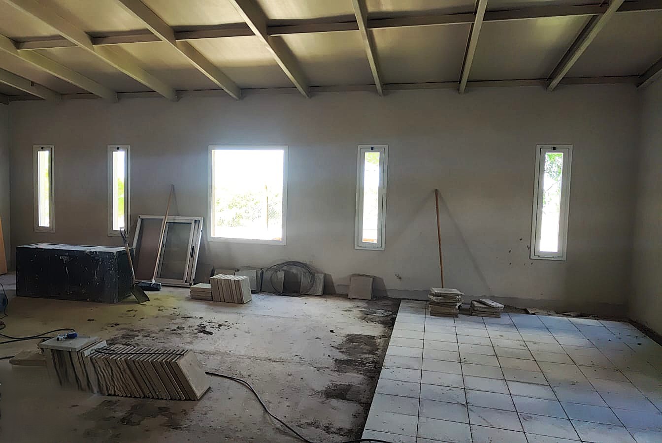 La dirección de Obras de Arquitectura y Viviendas informó que continúan los trabajos de albañilería y la ejecución de terminaciones en muros, junto con diversas adecuaciones estructurales. El complejo está compuesto por dos edificios. El principal cuenta con dos bloques y una superficie cubierta de 1.008 metros cuadrados, más 30 metros cuadrados semicubiertos.