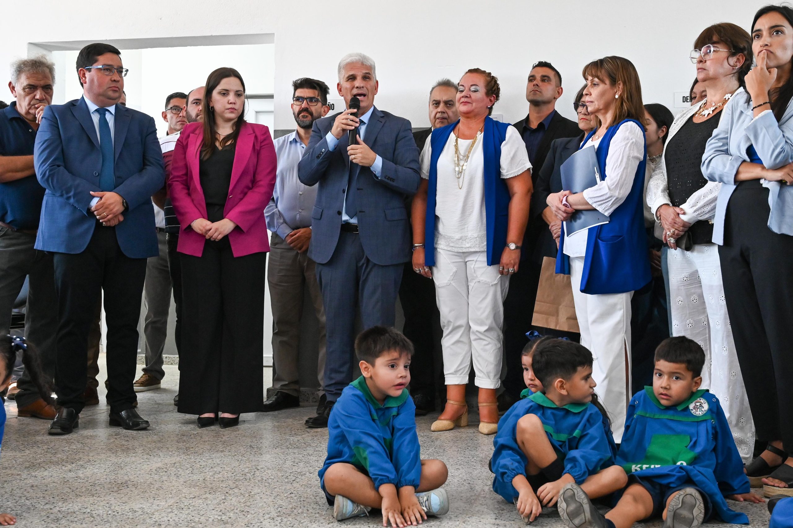El gobernador Claudio Poggi, en su llegada a la Escuela de Nivel Inicial (ENI) ‘Mi Valle Azul’, festejó que este establecimiento preexistente “comience a habitar un edificio nuevo”, en el marco de la Gira Educativa 2026, a la que definió “como una forma de manifestar nuestro acompañamiento en el comienzo de clases, desarrollando una actividad intensa en las escuelas de diferentes lugares de la provincia”.