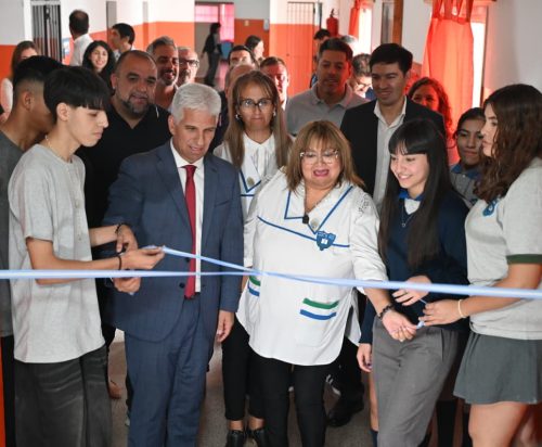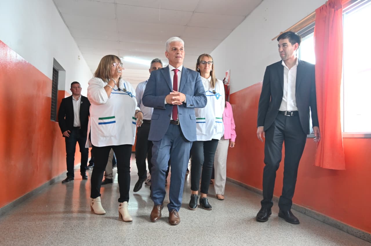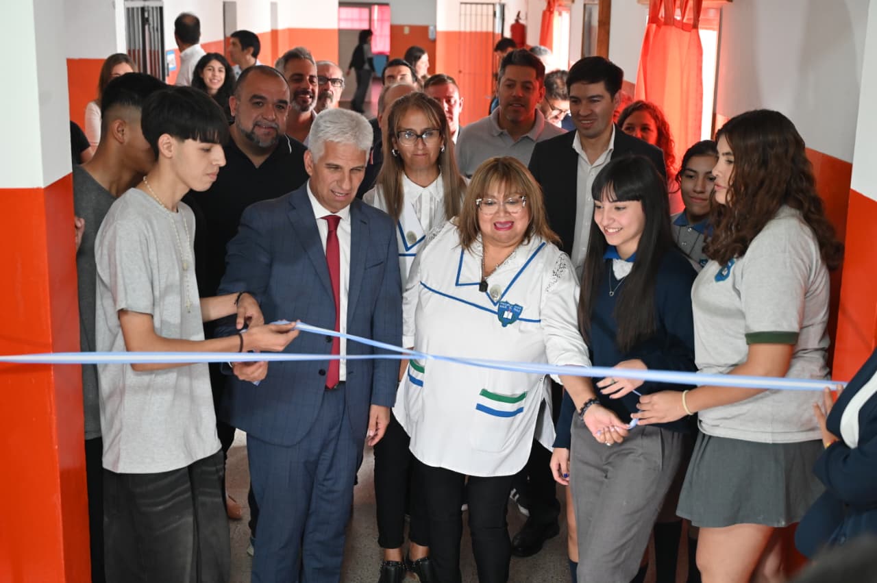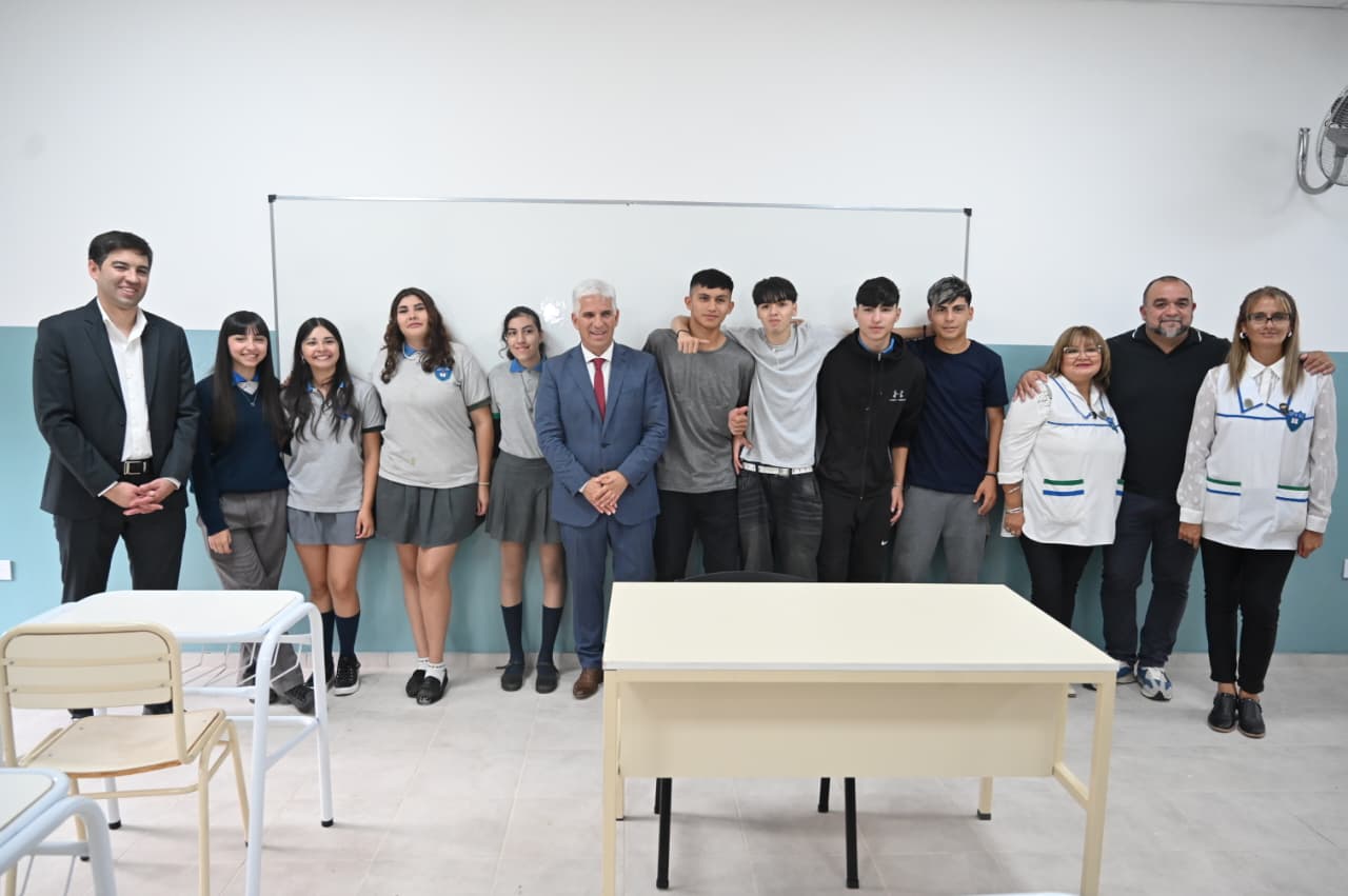 “Hoy es muy grato visitar esta escuela. La primera vez que vine en 2024, los primeros meses, porque habíamos hecho unos arreglos edilicios urgentes de mantenimiento, llegué y la escuela se estaba despoblando, cada vez había menos chicos, sobre todo en el Secundario. ¿Por qué? Porque el Secundario llegaba solamente hasta tercer año. Entonces un papá, una mamá, cuando su chico está en el primario, elige otra escuela para asegurarse los seis años, no asegurarse tres, porque a los tres tienen que romper el grupo, las amistades e ir a buscar otro banco. Me acuerdo que me junté con los chicos de tercer año, que deben ser los que hoy van a 5°, fui a un aula y charlé con ustedes. Era su último año en la escuela si no cambiábamos algo”, dijo, y cambió con la inauguración de hoy.