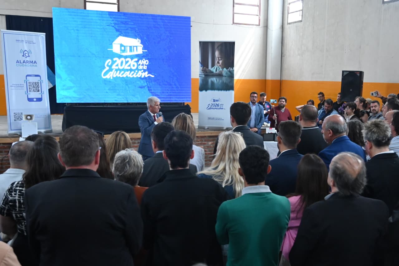 “Él asumió la presidencia con la visión de la revolución educativa que quería promover y generar que toda la república tenía que ser una escuela. Parafraseándolo, aspiramos a que toda la provincia de San Luis sea una escuela y desde el primer día que asumimos el gobierno hemos puesto a la educación en el centro de nuestras políticas públicas”, sostuvo.
