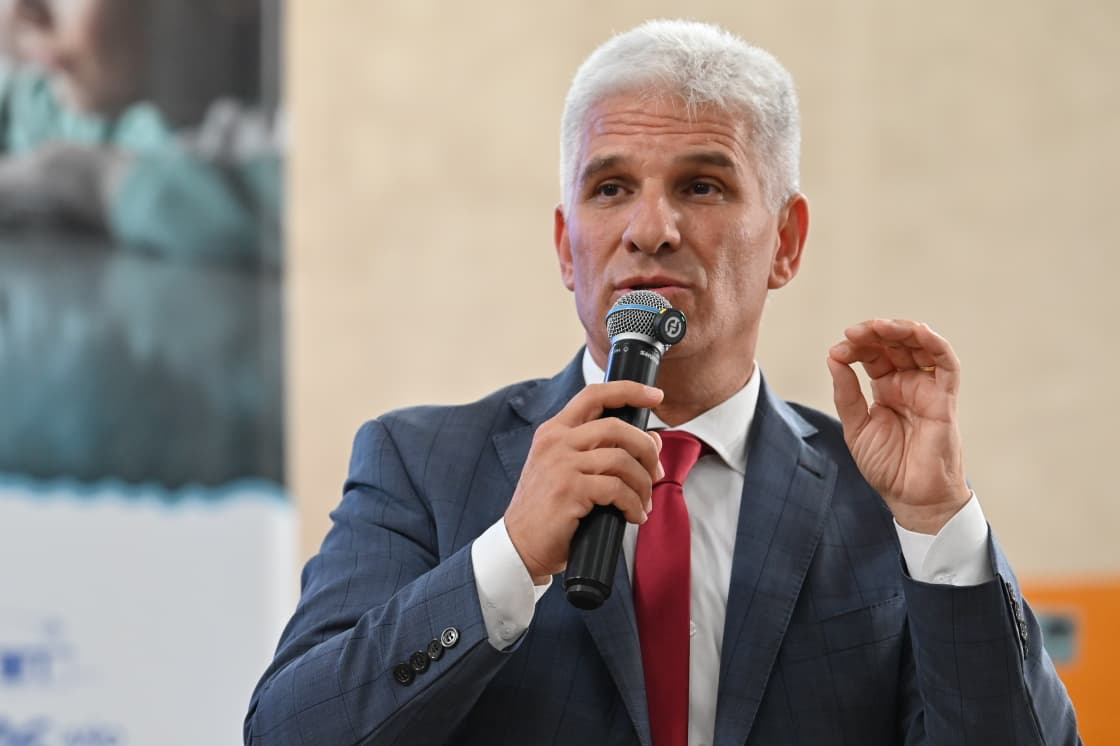 En su discurso, Poggi volvió a recordar el motivo de su gira y la conmemoración de los 200 años de la fundación de la primera escuela de Sarmiento, en San Francisco, una fecha que dio origen a que este año fuera declarado como ‘Año de la Educación’.