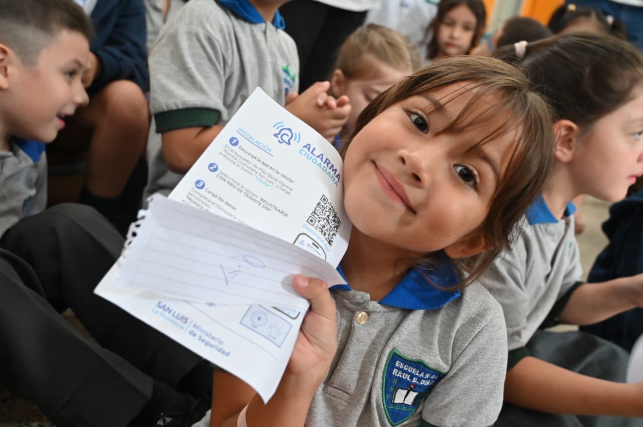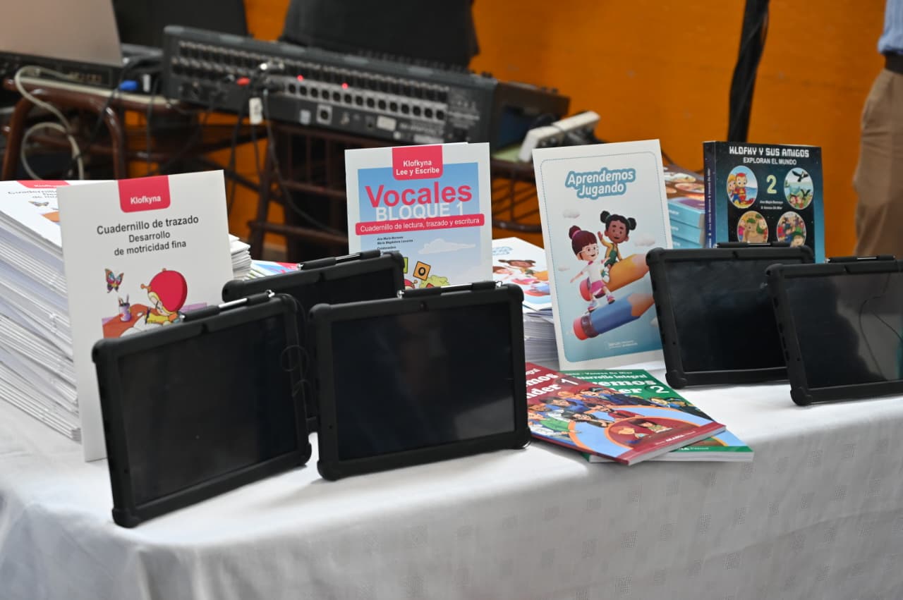 A su lado, en una mesa, estaba acomodado el material didáctico que el Ejecutivo reparte en todas las instituciones de San Luis como parte del Plan Provincial de Alfabetización ‘Queremos Aprender’, incluidas siete tablets, más un kit deportivo para los chicos.