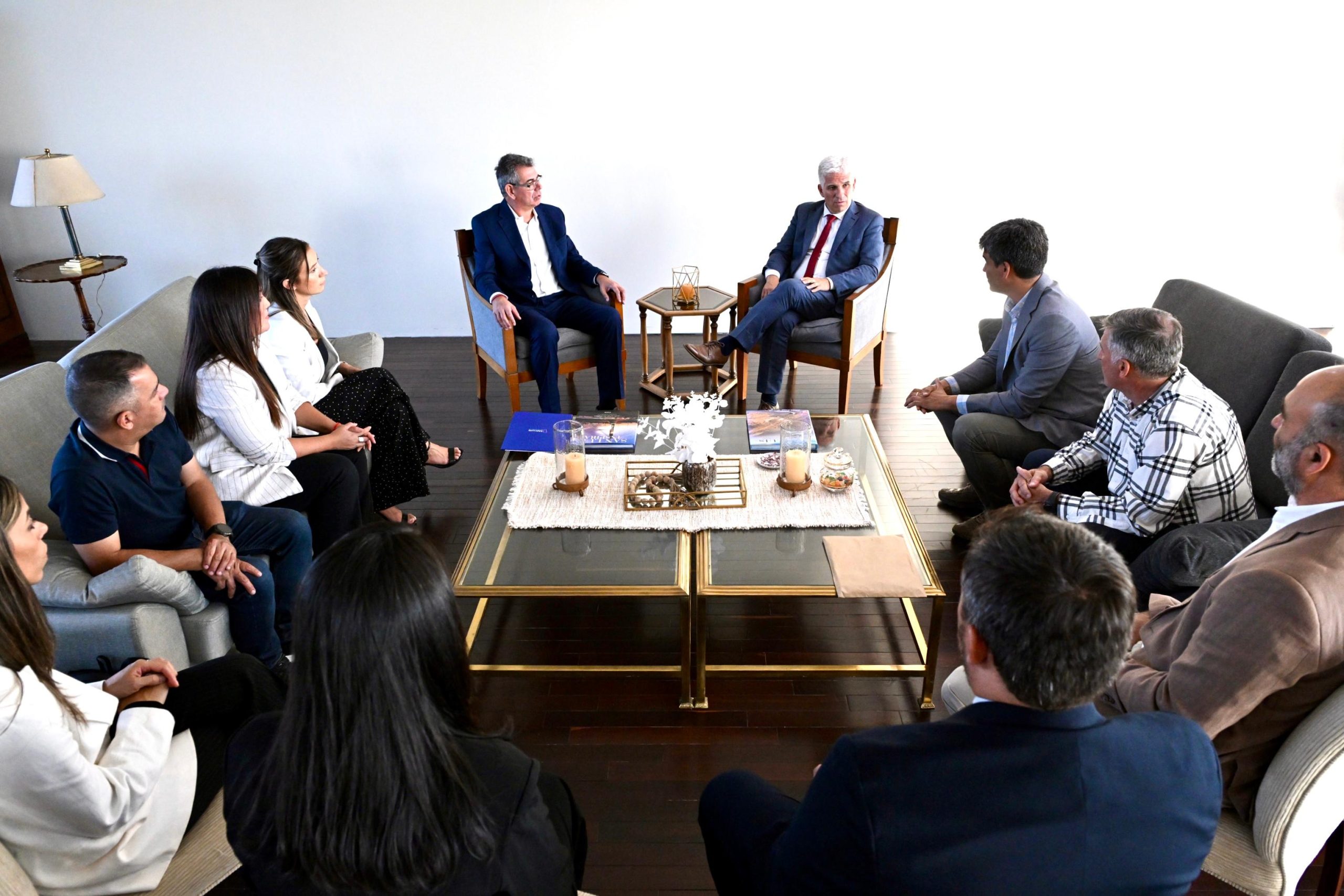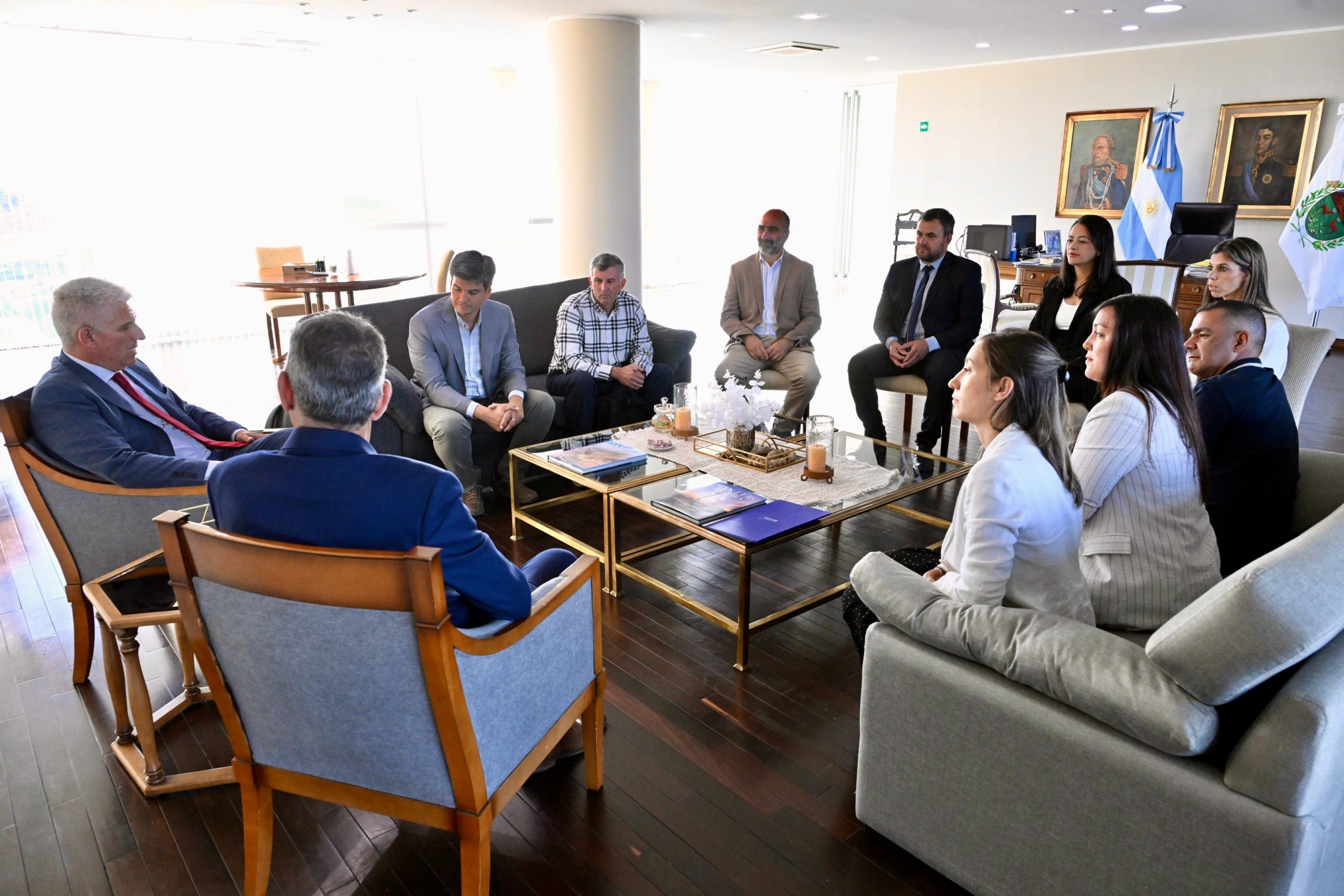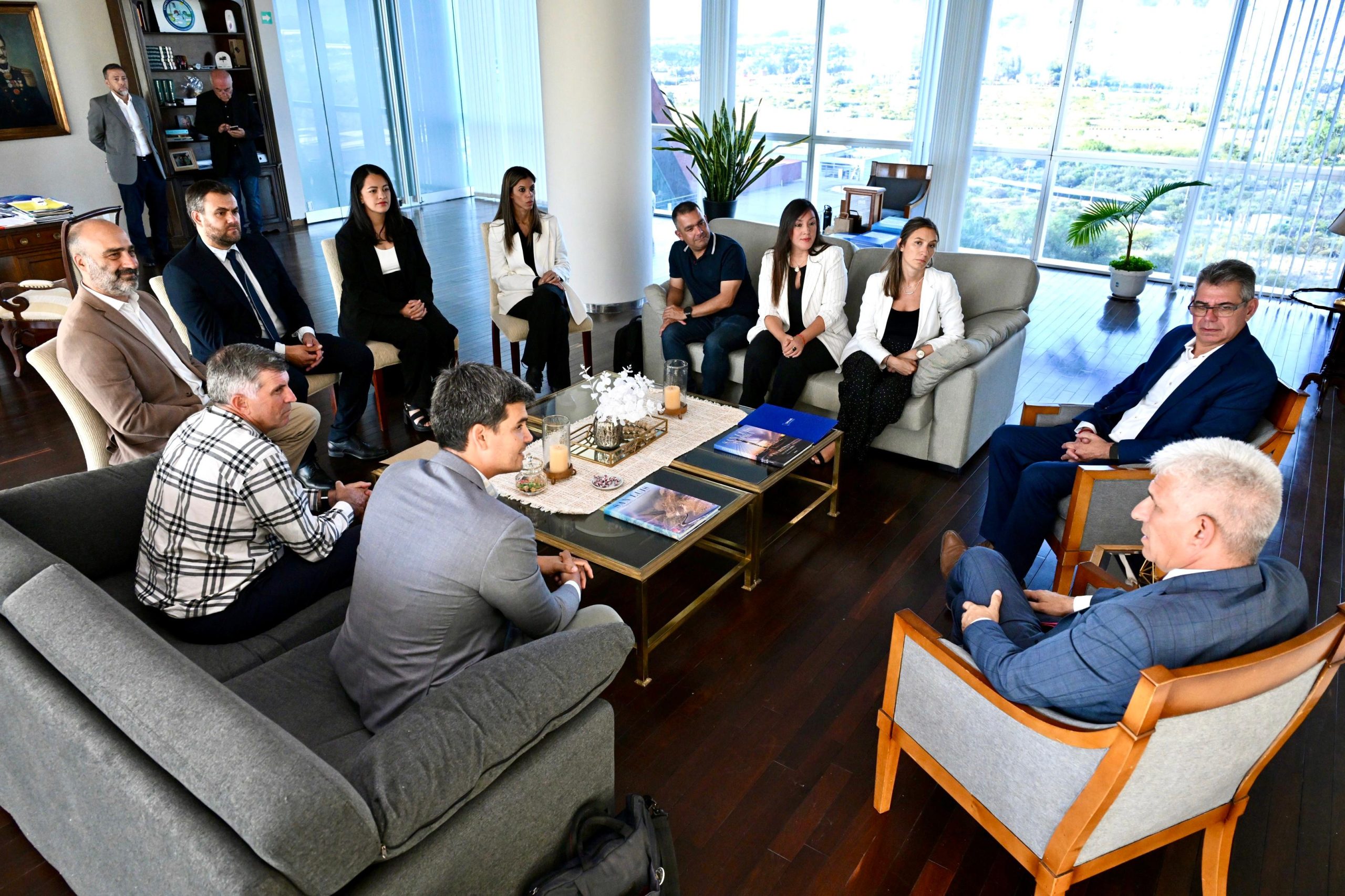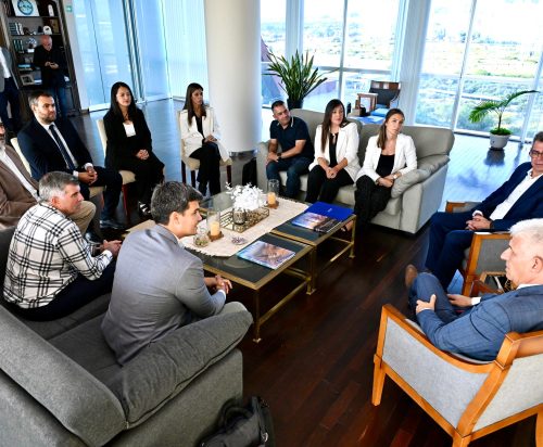El gobernador Claudio Poggi y su equipo mantuvieron una reunión con representantes de Calicanto Solar SA, firma responsable del parque de paneles solares que se erige sobre 72 hectáreas en Nogolí.