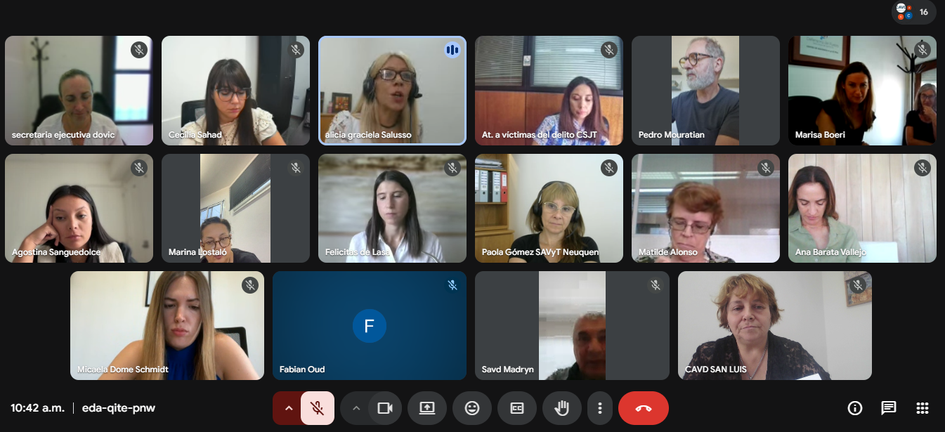 Gabriela Gómez, jefa del CAVD, dependiente de la dirección de Derechos y Garantías Constitucionales participó de manera virtual de la primera reunión del año, representando a la provincia en el ámbito nacional.
