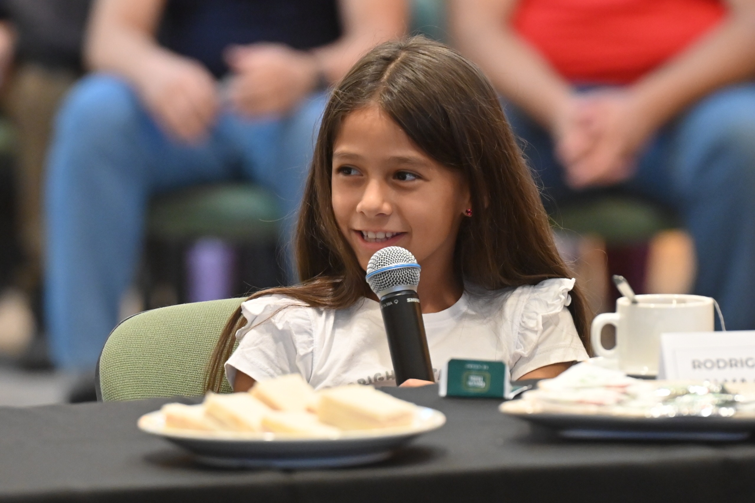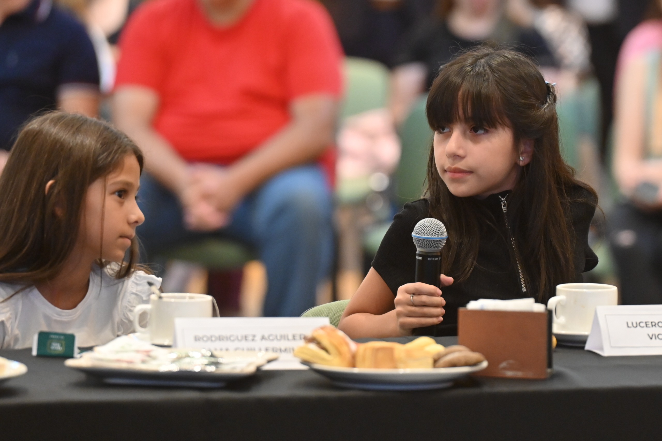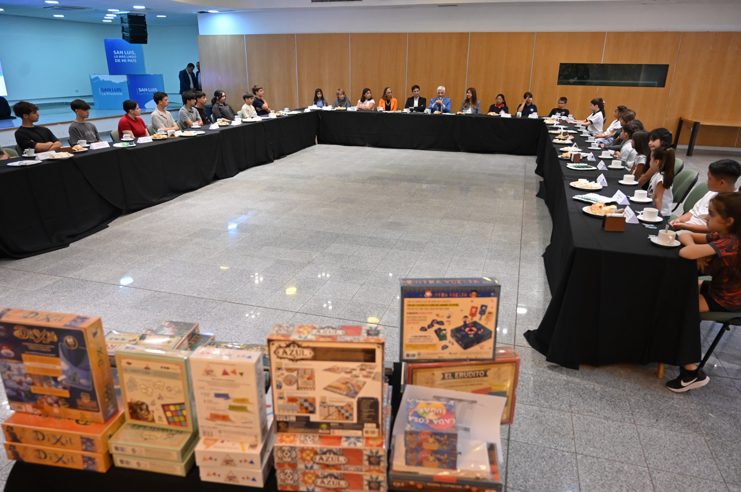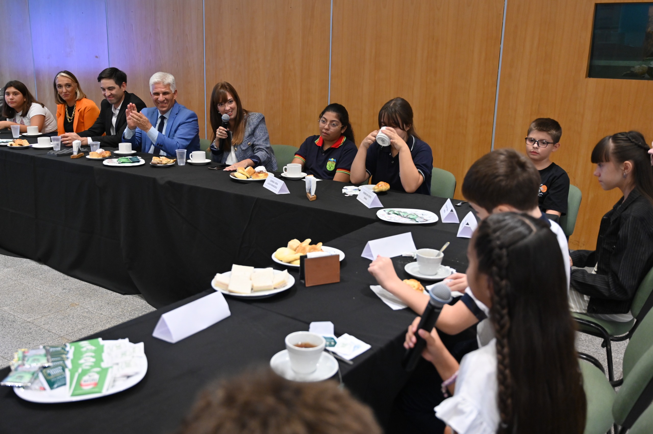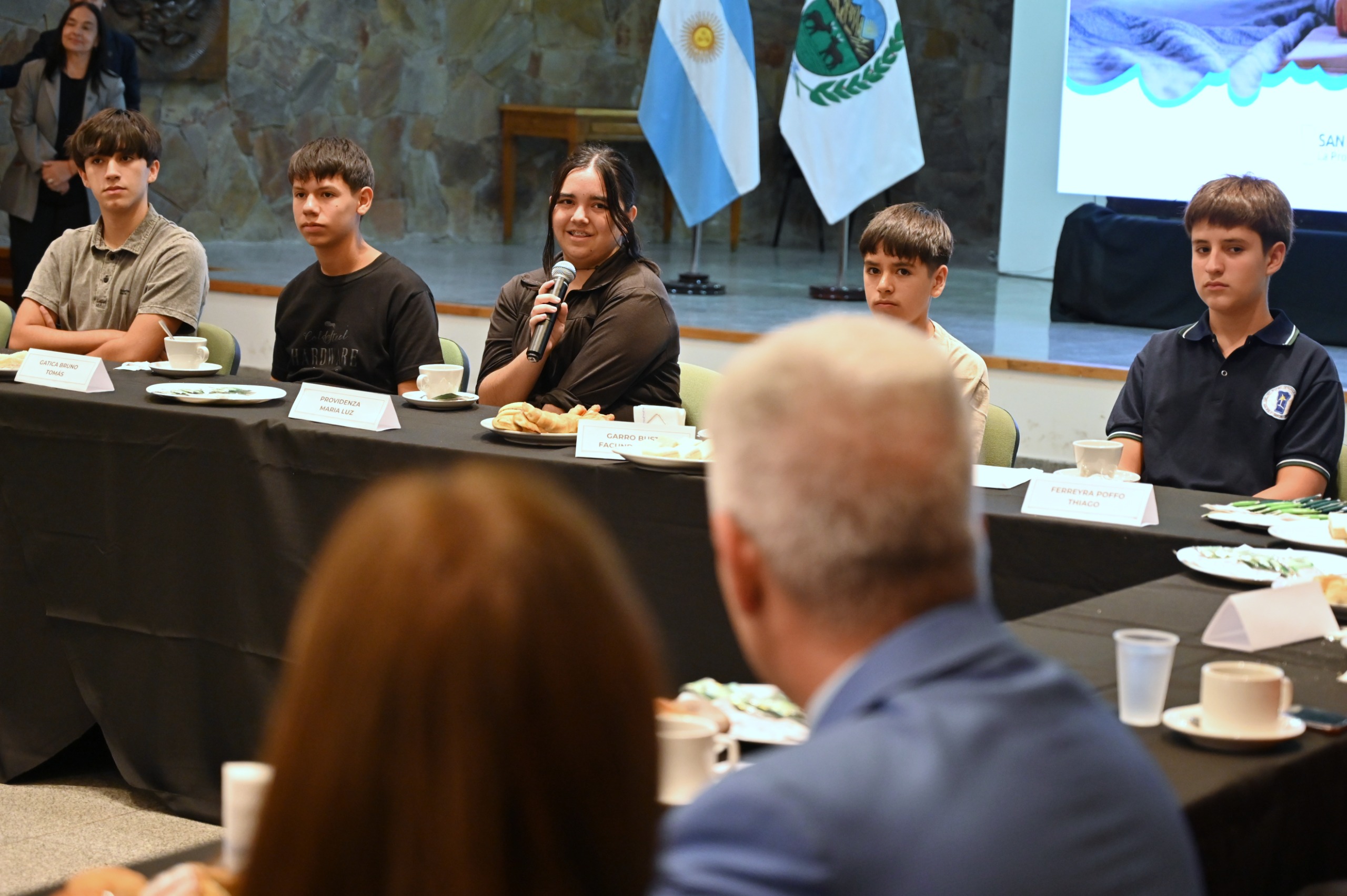 La merienda dejó de ser un acto formar en todo momento, ya que los chicos tuvieron el micrófono abierto para contar sus experiencias, responder las preguntas del Gobernador y hasta jugar a deletrear palabras. Poggi lanzó dos palabras y uno de los jóvenes con le deletreó con firmeza y sin titubear: Gobernador y presidente.