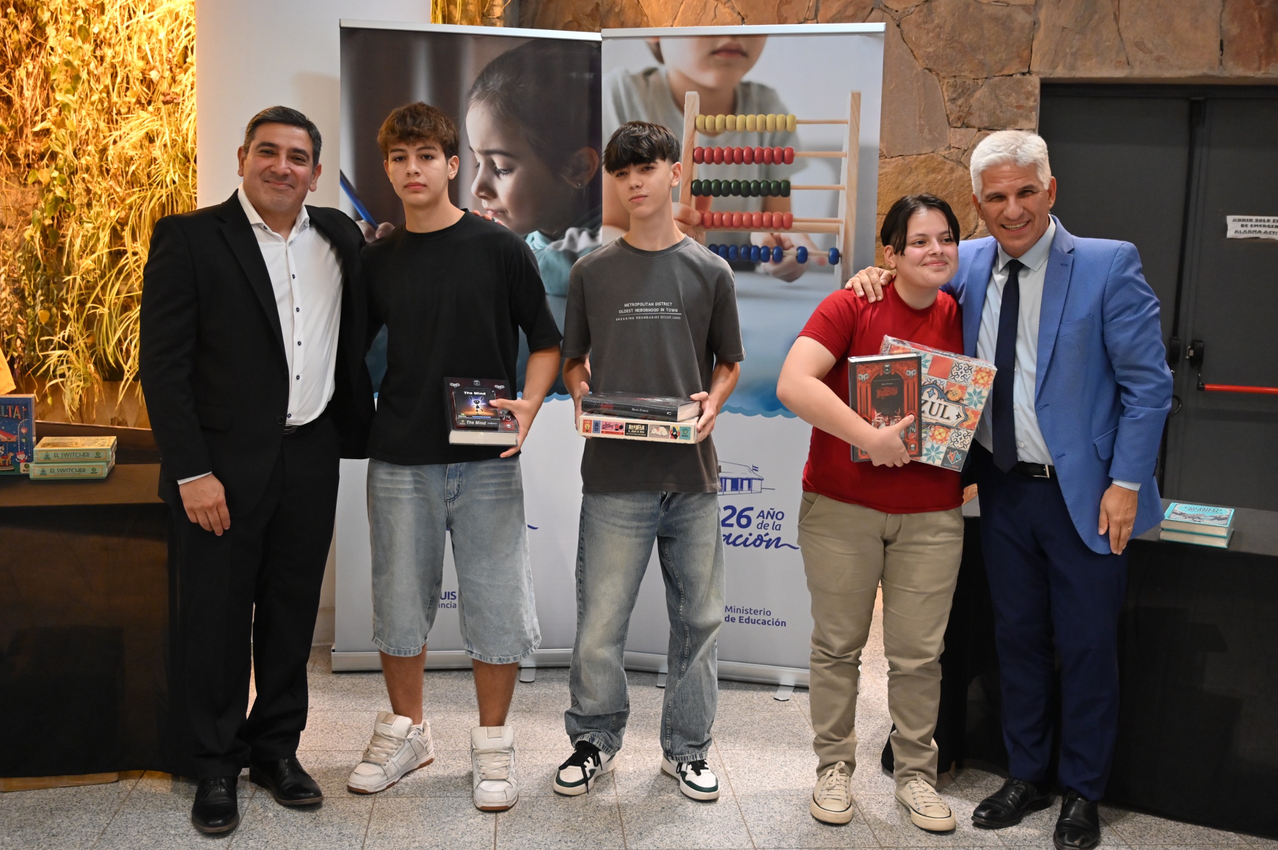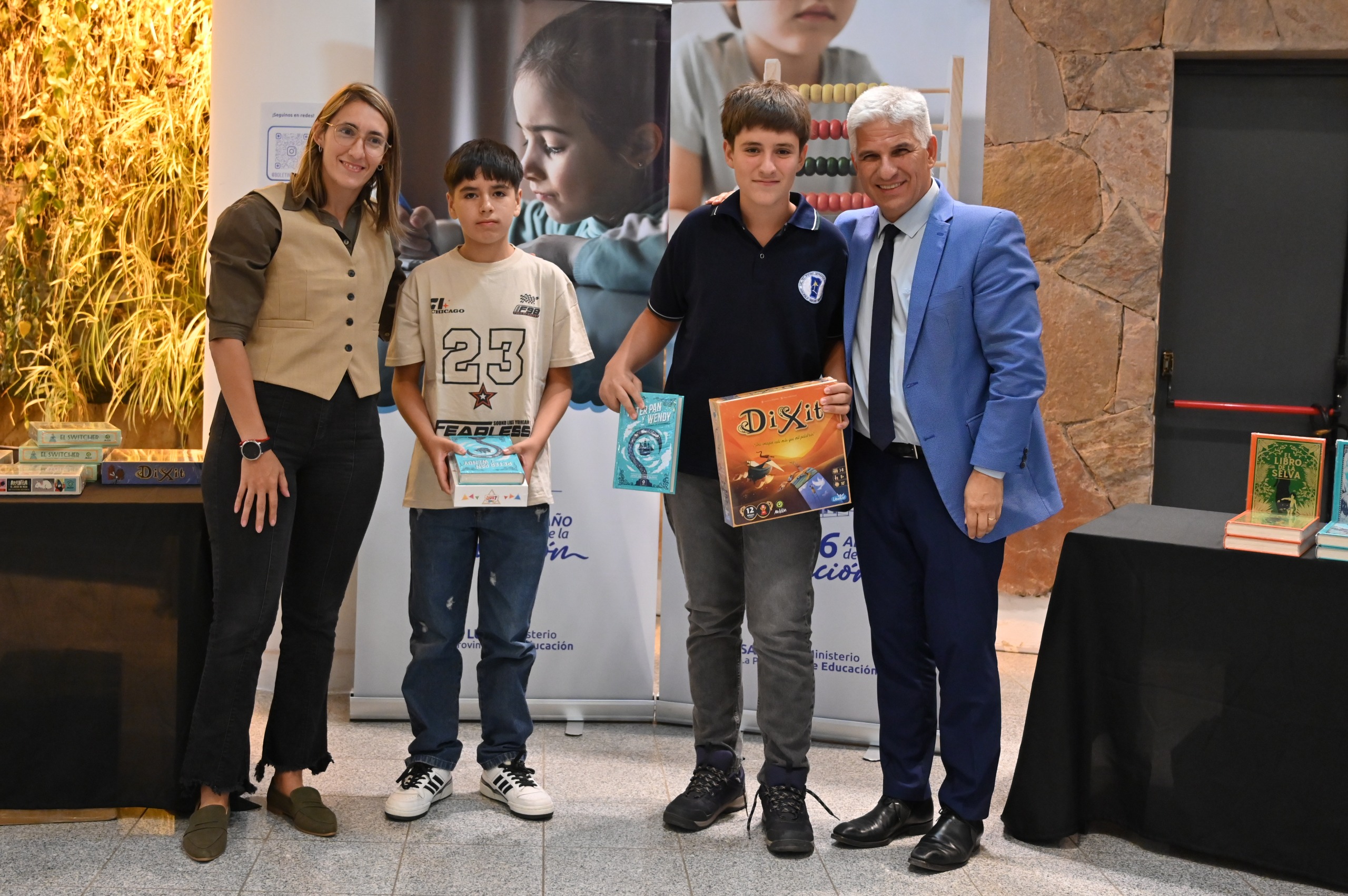 “‘Sumá Leyendo’, que en síntesis es un gran ejercicio de comprensión lectora, porque para interpretar alguna consigna, alguna consulta que te hacía el mismo sistema, uno tiene que entender qué te está preguntando para responder bien. Entonces, de 2.000 chicos que participaron en toda la provincia durante el verano, estos 36 chicos fueron los ganadores. Felicitaciones a ustedes”, aseguró.