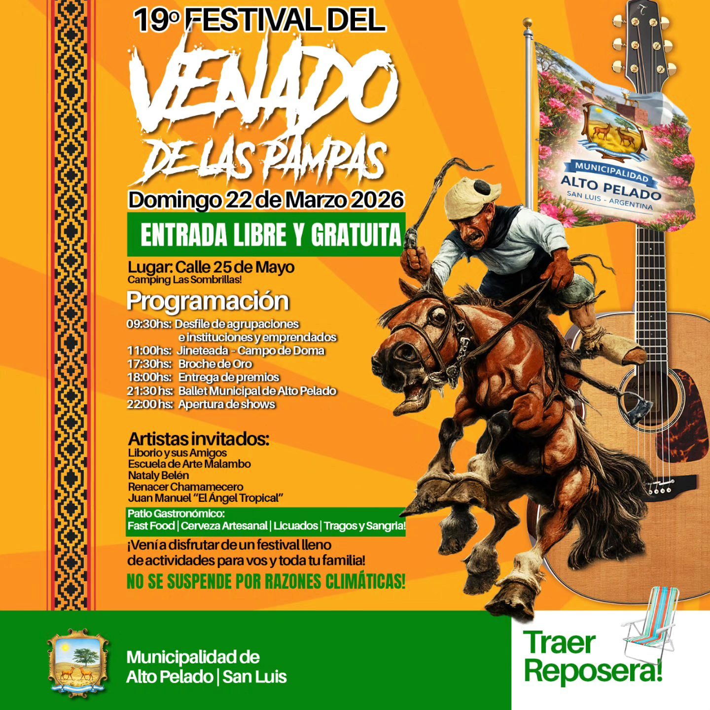 El 19° Festival del Venado de las Pampas vuelve a poner la atención en Alto Pelado. El encuentro será el 22 de marzo en la calle 25 de Mayo, en el Camping Las Sombrillas. Promete una jornada completa de actividades pensadas para toda la familia a pura tradición.