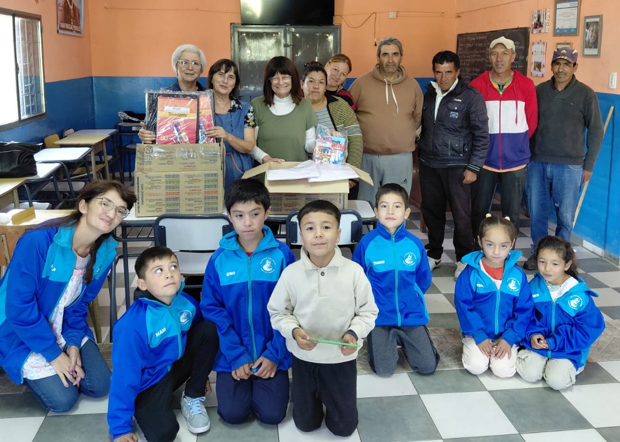 Las funcionarias, que fueron recibidas por la directora Carina Díaz, le transmitieron a la comunidad educativa el saludo del gobernador Claudio Poggi y dialogaron con los alumnos que recibieron los elementos escolares con alegría.