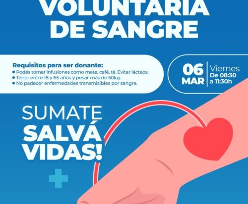 El sistema público de salud, a través del Hospital Central ‘Dr. Ramón Carrillo’, invita a la comunidad a participar en una nueva jornada de donación de sangre este viernes, en el hall principal del establecimiento, de 8:30 a 11:30 horas. La actividad, organizada por el Servicio de Hemoterapia, busca mantener reservas suficientes de sangre y sus derivados, elementos indispensables para atender emergencias, intervenciones quirúrgicas y tratamientos de urgencia.