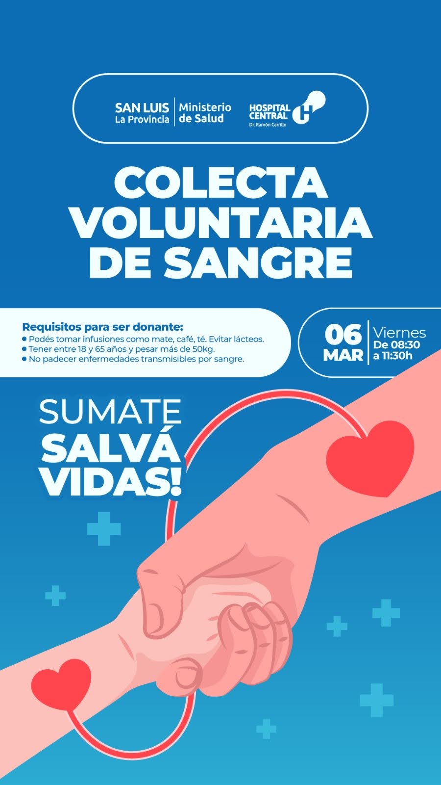 El Hospital Carrillo hace un llamado a la comunidad a sumarse a esta causa. La solidaridad de cada vecino es fundamental para garantizar que quienes necesiten una transfusión reciban atención oportuna. Donar sangre es un gesto simple que puede marcar una diferencia enorme.