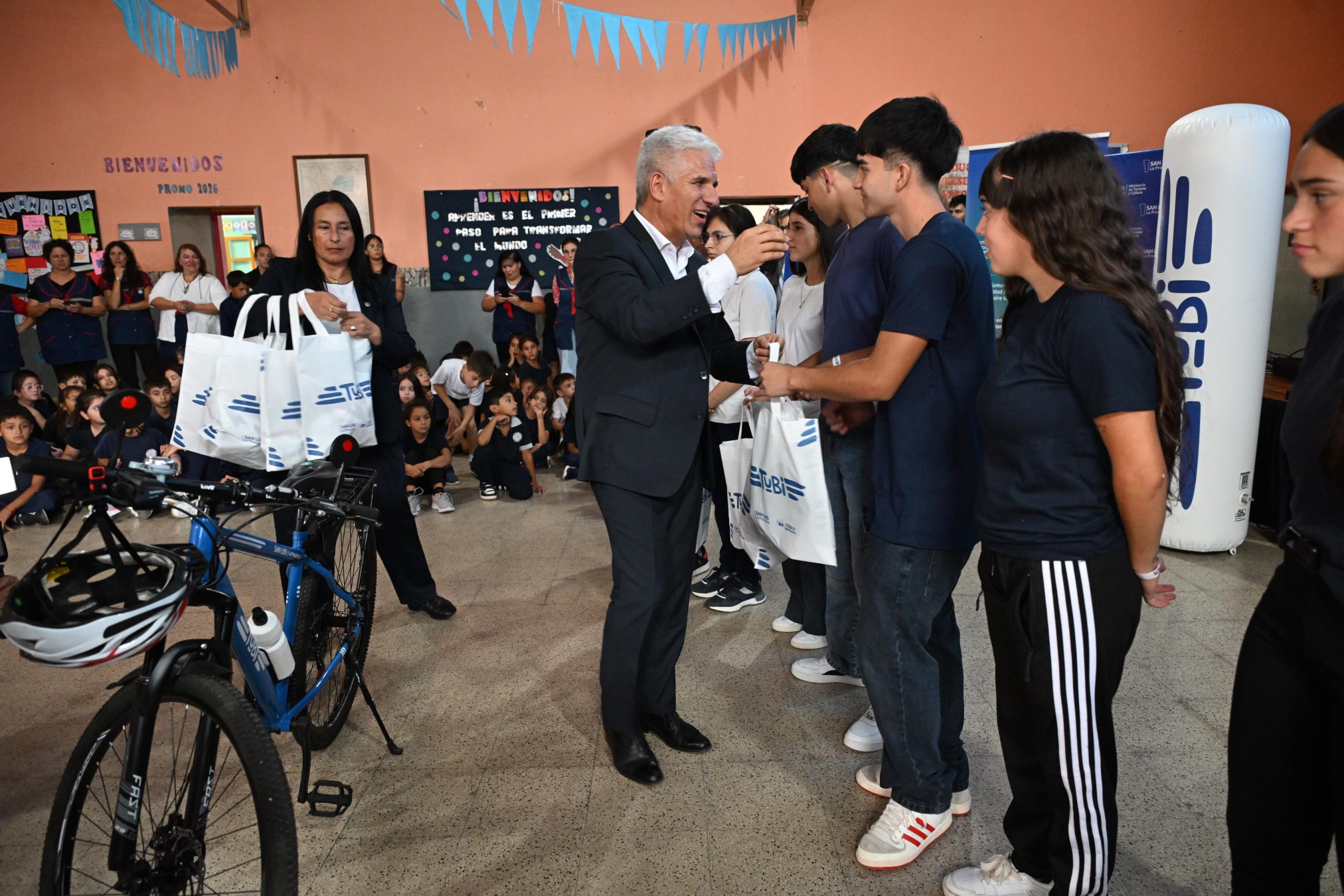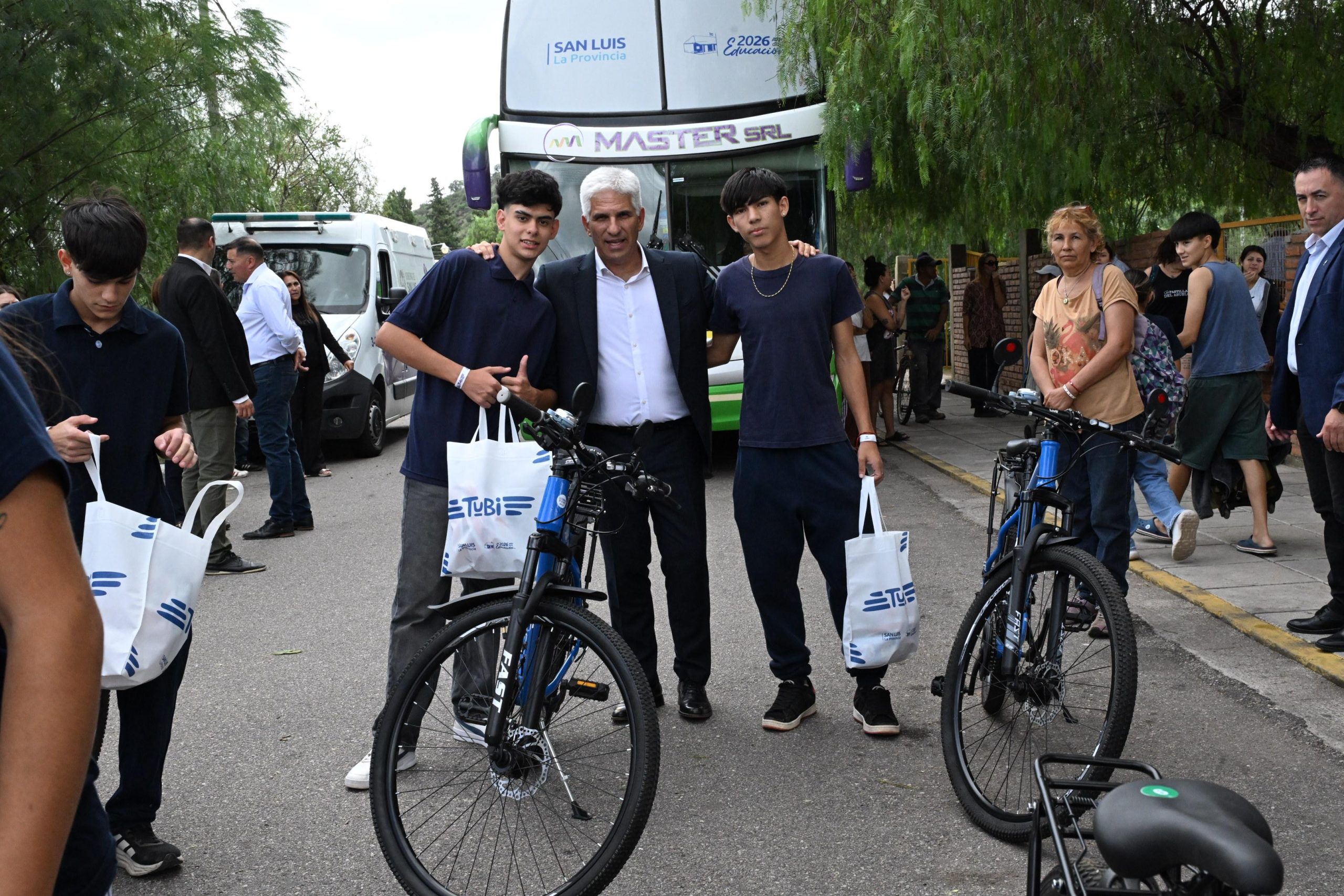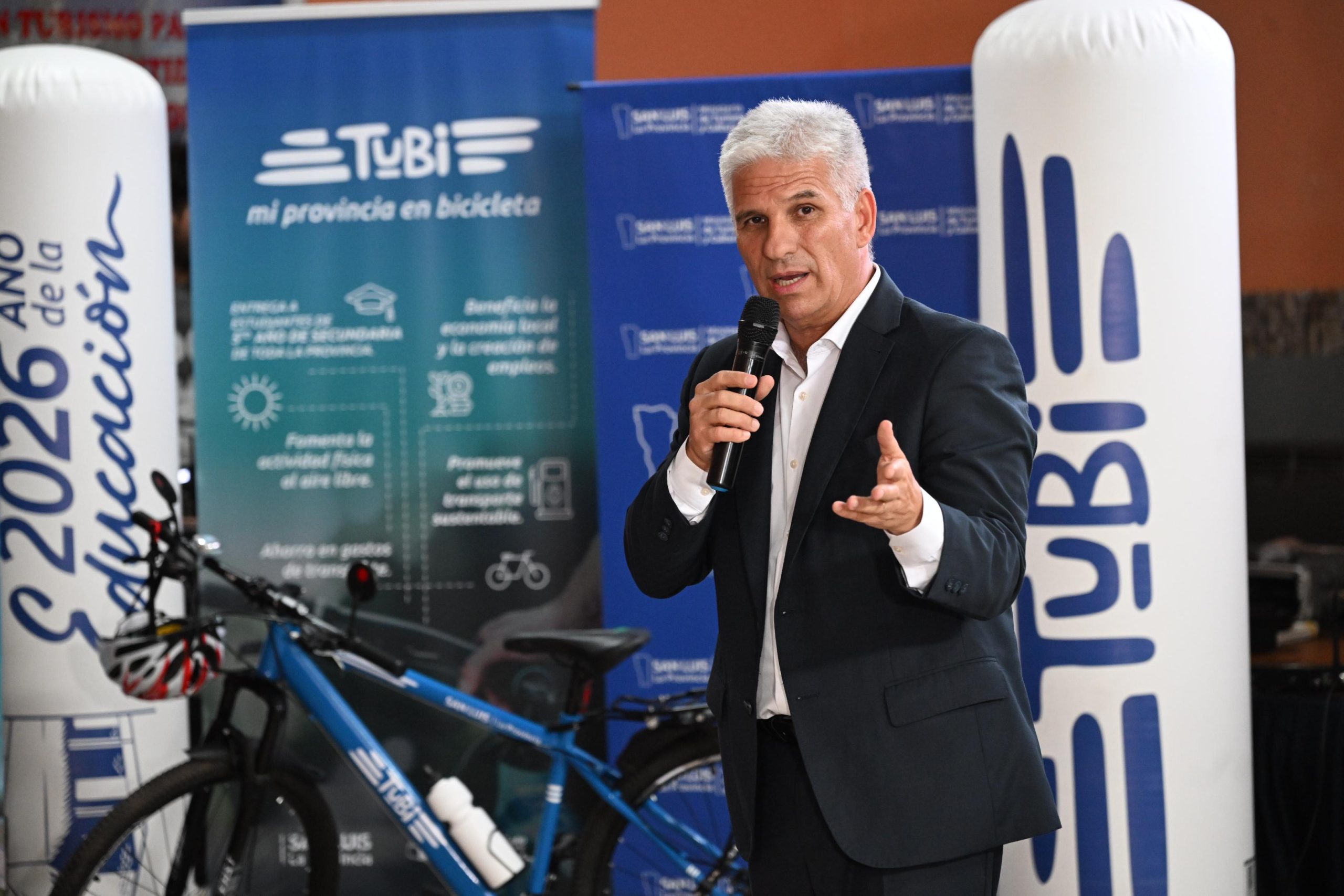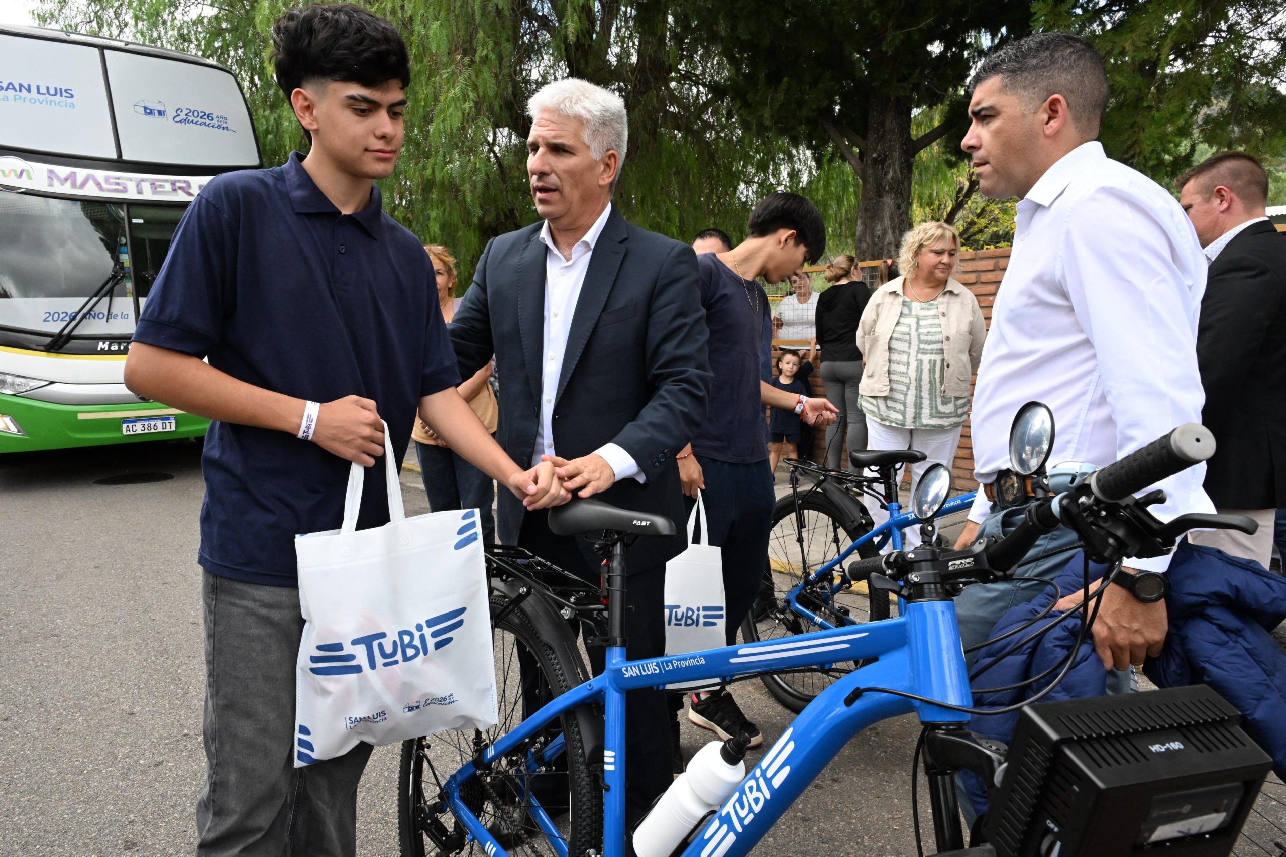 Junto con el inicio del ciclo lectivo en San Luis, en el Año de la Educación, el Ejecutivo también puso a rodar la edición 2026 de Plan TuBi, este miércoles, en la Escuela N°306 de Villa de la Quebrada. De manos del Gobernador, del secretario de Transporte y del ministro de Educación, 16 alumnos de 5º año recibieron sus bicicletas con pedaleada inaugural incluida.