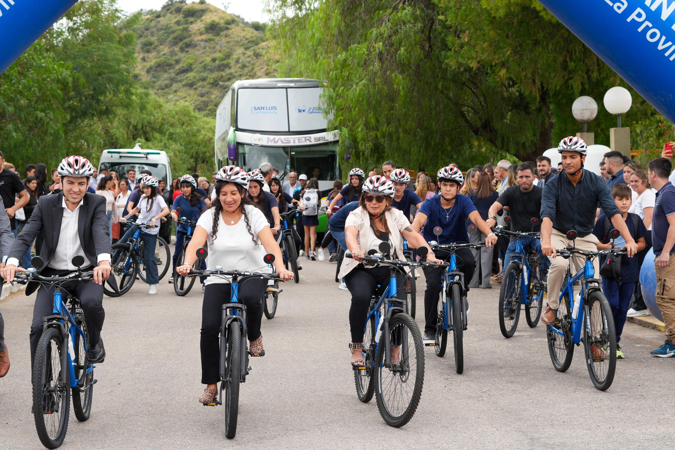 Este año el Ejecutivo prevé repartir 7.611 bicicletas a chicos de 5° año de escuelas de toda la provincia, incluidas las rurales. Dieciséis alumnos de Villa de la Quebrada recibieron sus nuevos rodados e hicieron una pedaleada inaugural.