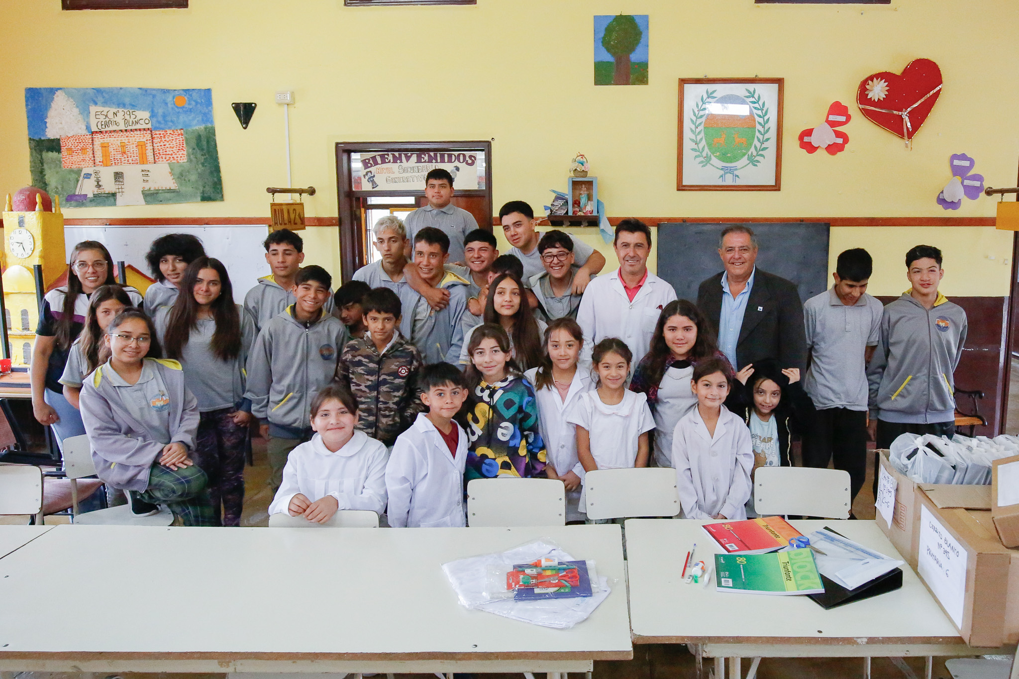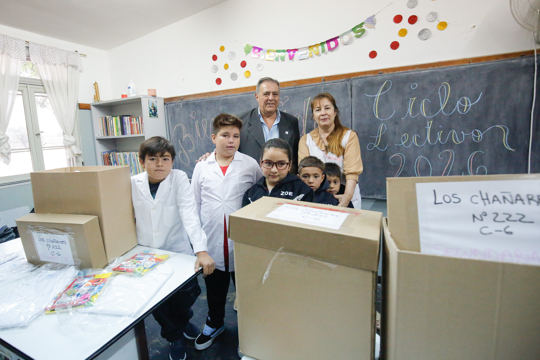 El Programa de Apoyo a la Escolaridad Rural llegó este martes a Los Chañares, Cerrito Blanco y La Lomita, donde estudiantes de los niveles Primario y Secundario recibieron guardapolvos y útiles esenciales para el inicio del ciclo lectivo.