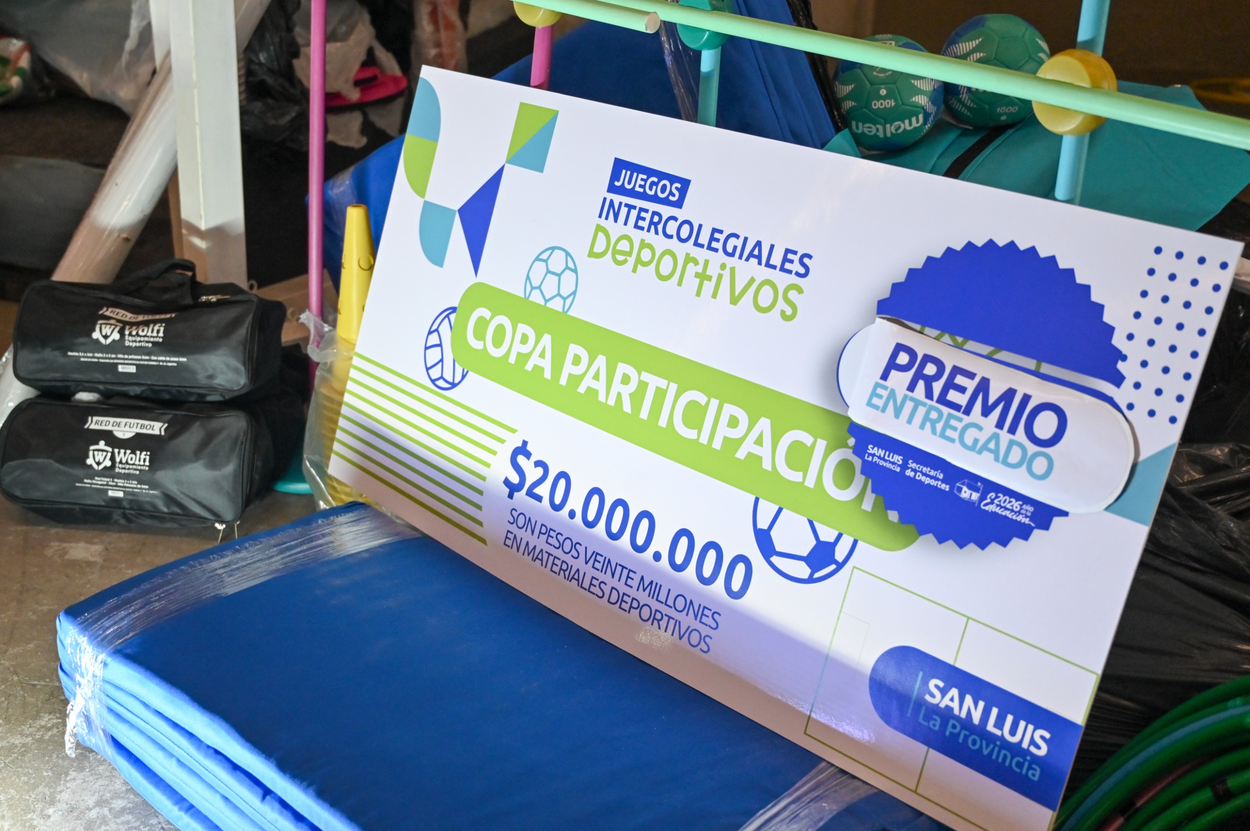 Por un lado, la Escuela Pública Bilingüe Digital ‘Nelson Mandela’, de la ciudad de La Punta, obtuvo la ‘Copa Participación’. De esta manera, recibió 20 pelotas de básquet y fútbol ; 60 pelotas, dos arcos y cuatro redes de handball; 25 pelotas, dos varillas y dos redes de vóley; un postes par; infladores; silbatos; colchonetas; cronómetros; conos; vallas; aros y bolsos porta pelotas.
