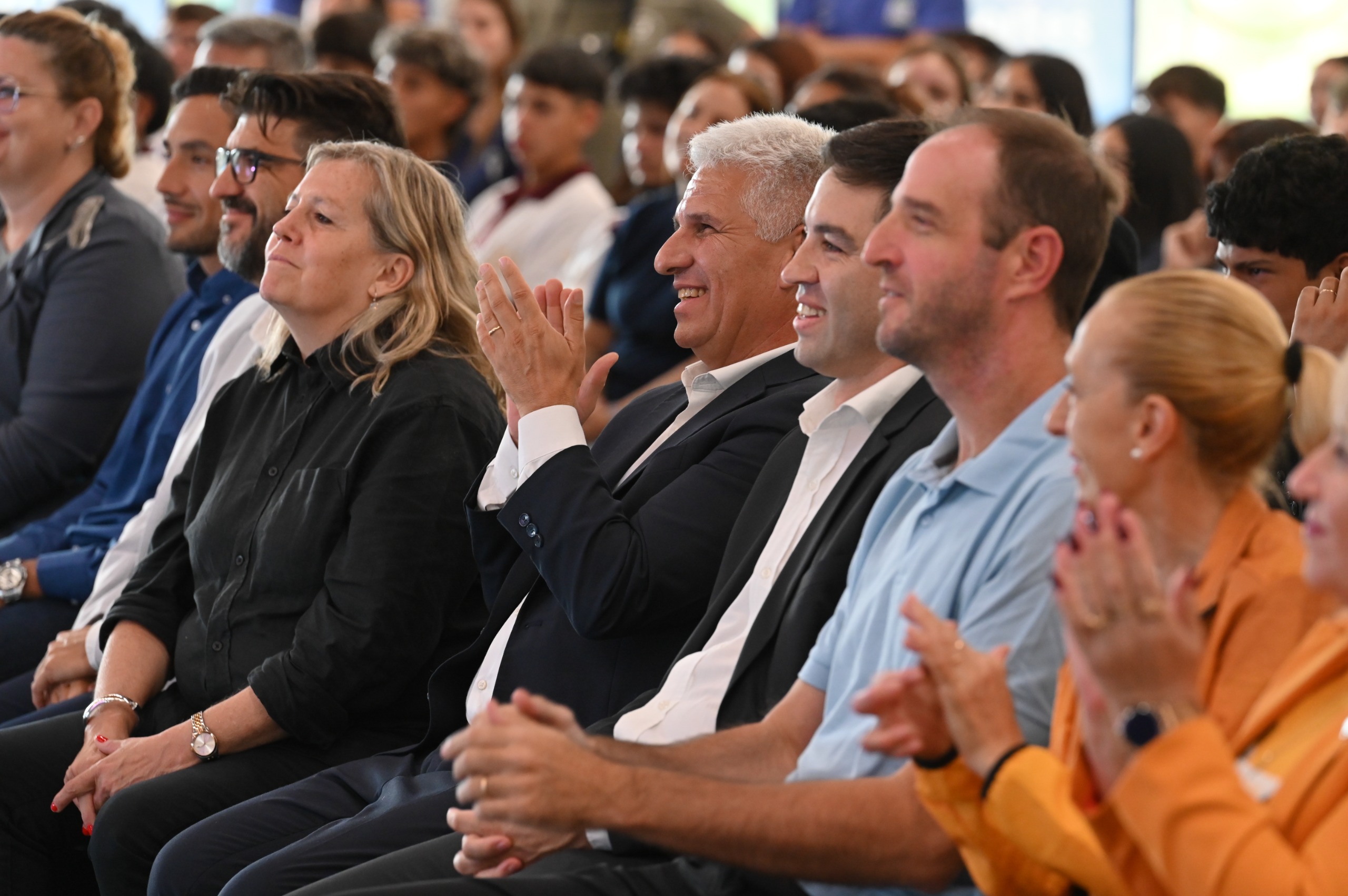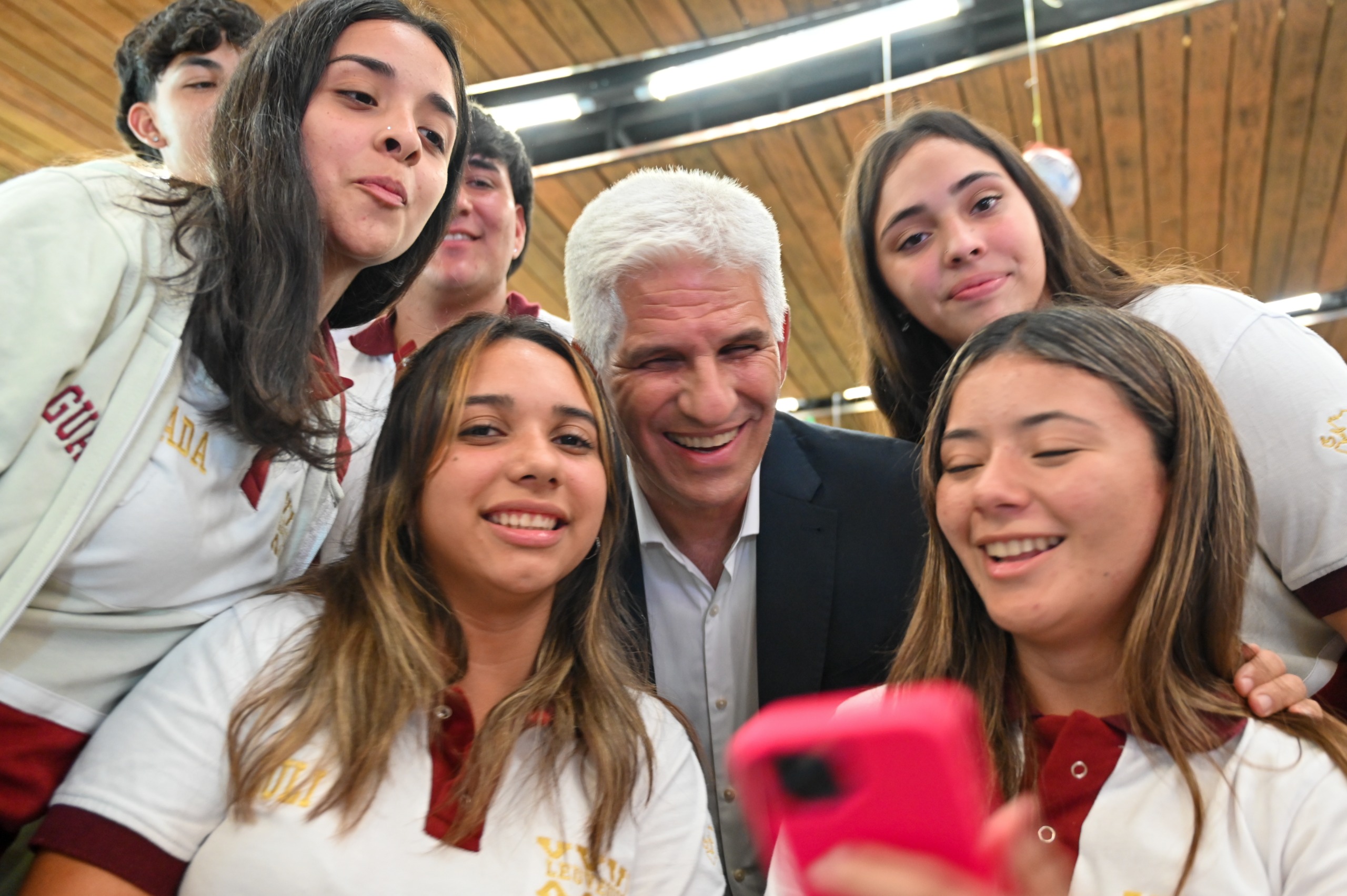 “Estamos recorriendo diferentes escuelas de toda la provincia. Comenzamos las clases la semana pasada y esto lo hemos enmarcado dentro de la Gira Educativa. El tema de hoy es los Intercolegiales Deportivos, tanto la premiación del año pasado, que están las tres instituciones educativas que ganaron los tres principales premios del año pasado en la versión 2025, y por supuesto, el lanzamiento de los Intercolegiales Deportivos para este año 2026, donde seguramente ustedes también van a ser protagonistas”, manifestó el Primer Mandatario.