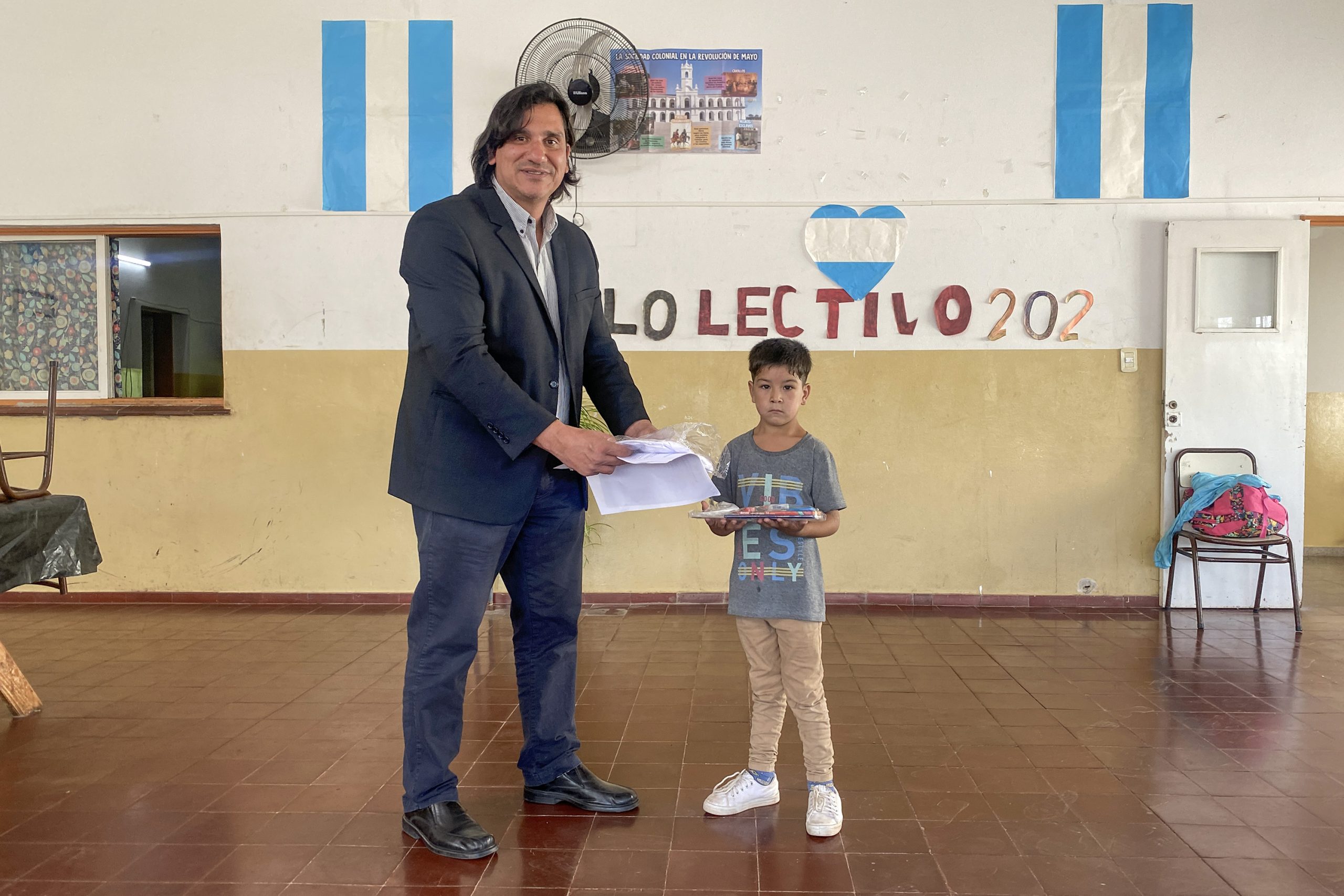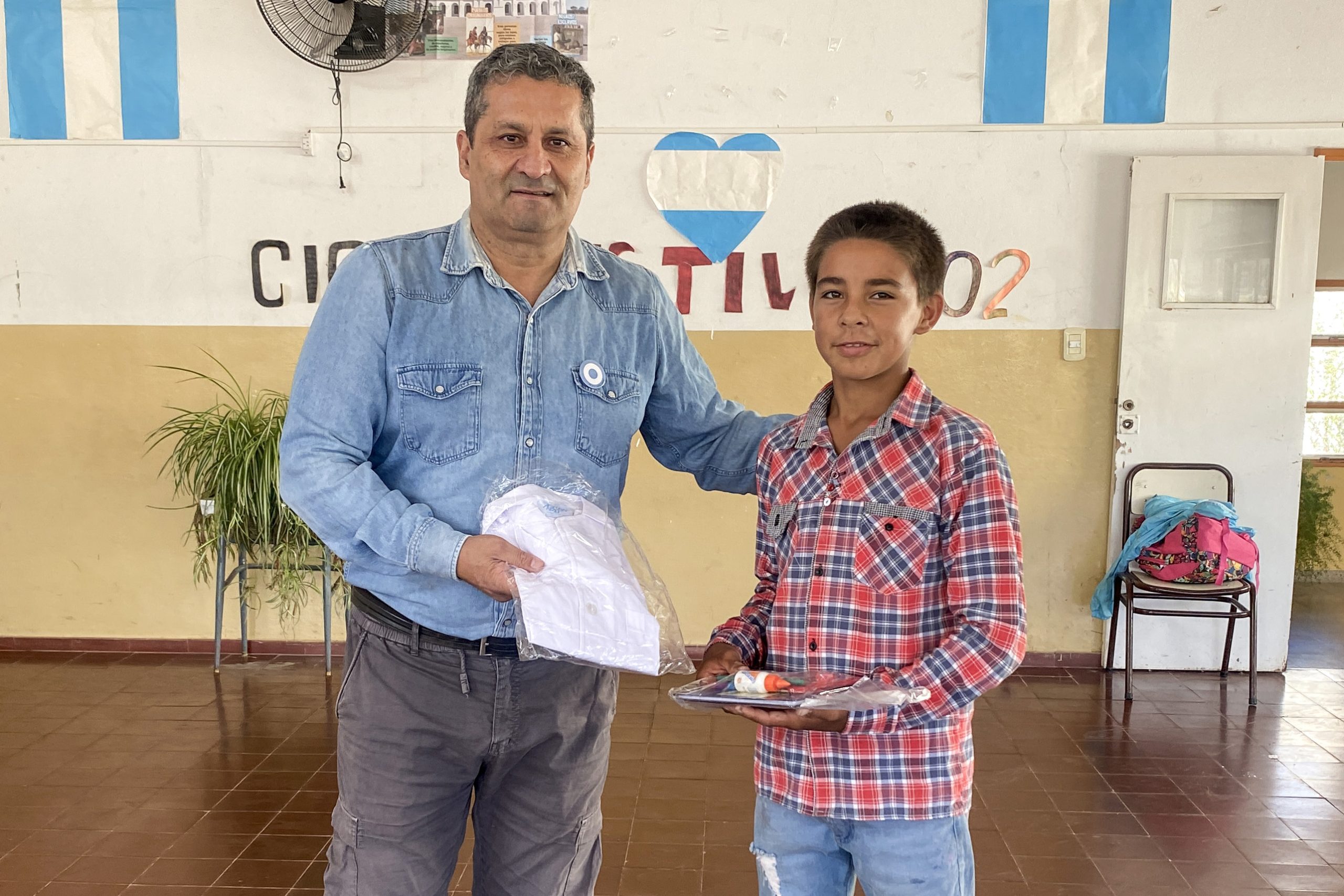 La escuela Nº4 ‘Ministro José María Tissera’ se encuentra en el paraje Santa Rosa del Gigante en el departamento Belgrano. Allí el secretario de Personas con Discapacidad, Luis Giraudo, fue recibido por el director Marco Alcaraz y todos los alumnos que esperaban con ansias los flamantes guardapolvos y kits escolares.
