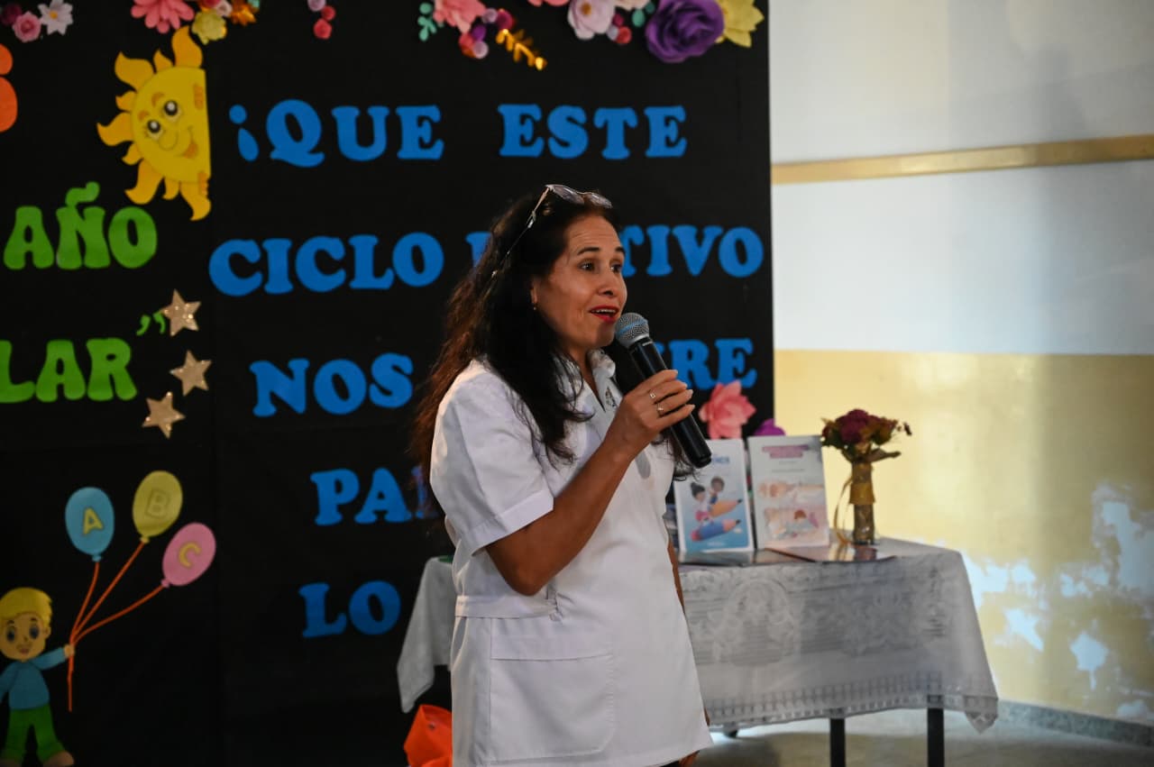 La visita también sirvió para entregar material didáctico del programa ‘Queremos Aprender’ y un kit deportivo para actividades de educación física. Castro, al dirigirse a la comitiva, dijo: “Dios nos ha mandado la bendición de la lluvia. En primer lugar, agradecer desde lo más profundo de mi corazón todo lo que se está llevando a cabo en nuestra institución educativa, trabajando en el baño de jardín de infantes, el baño para la docente, que desde que se construyó en 1994, nunca se hizo”.