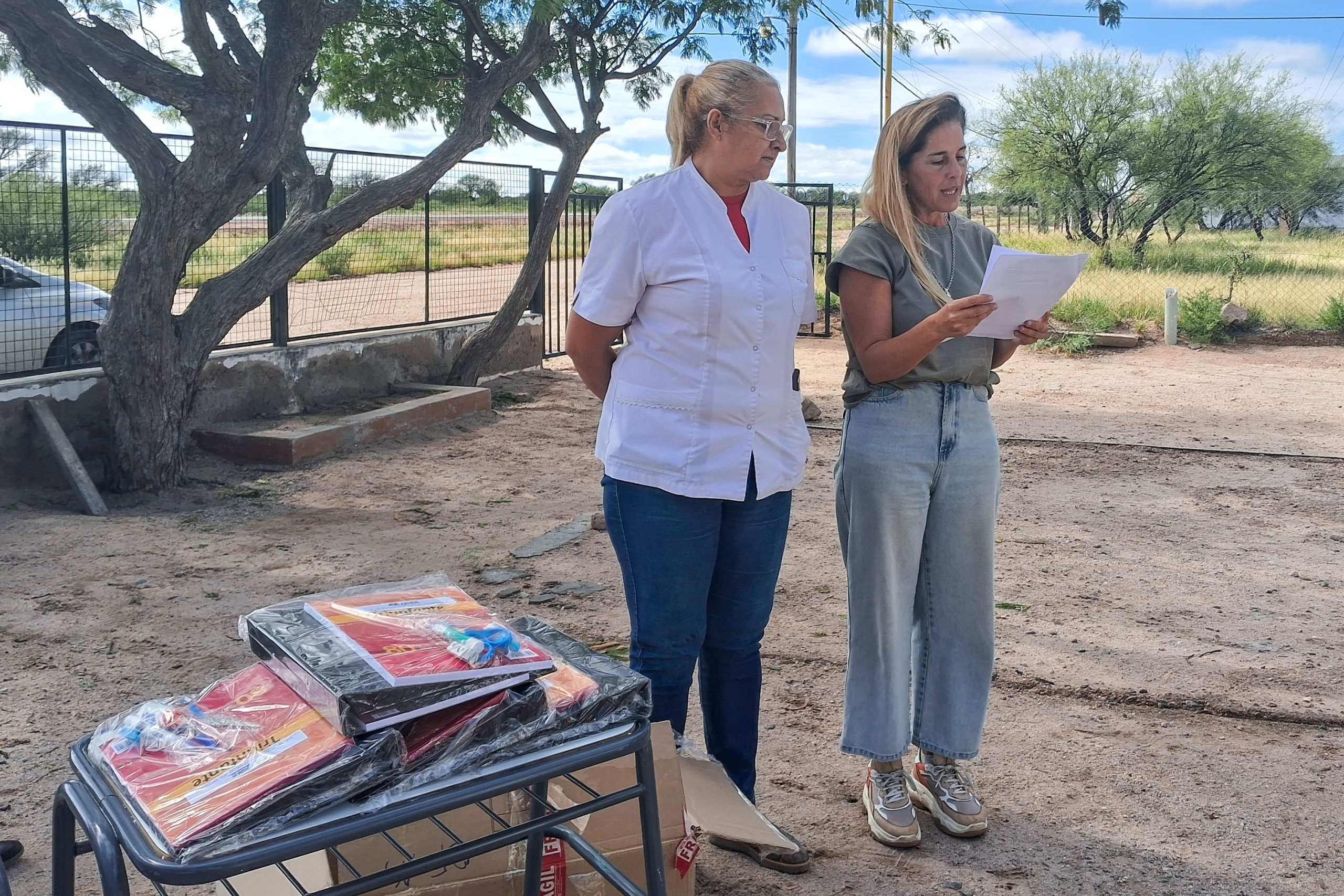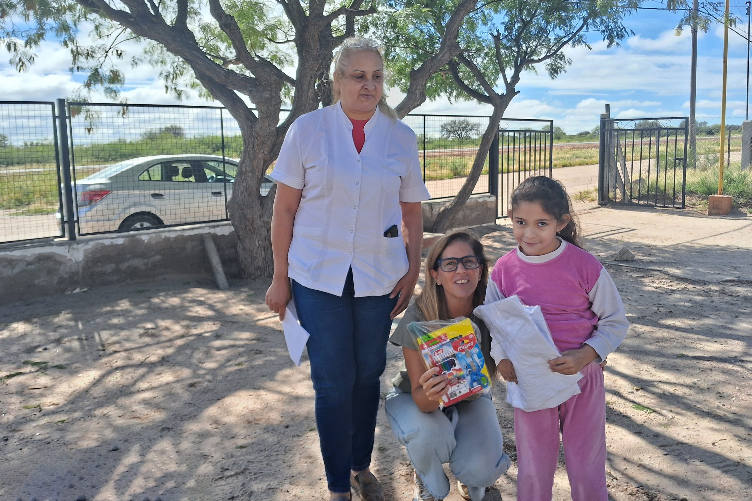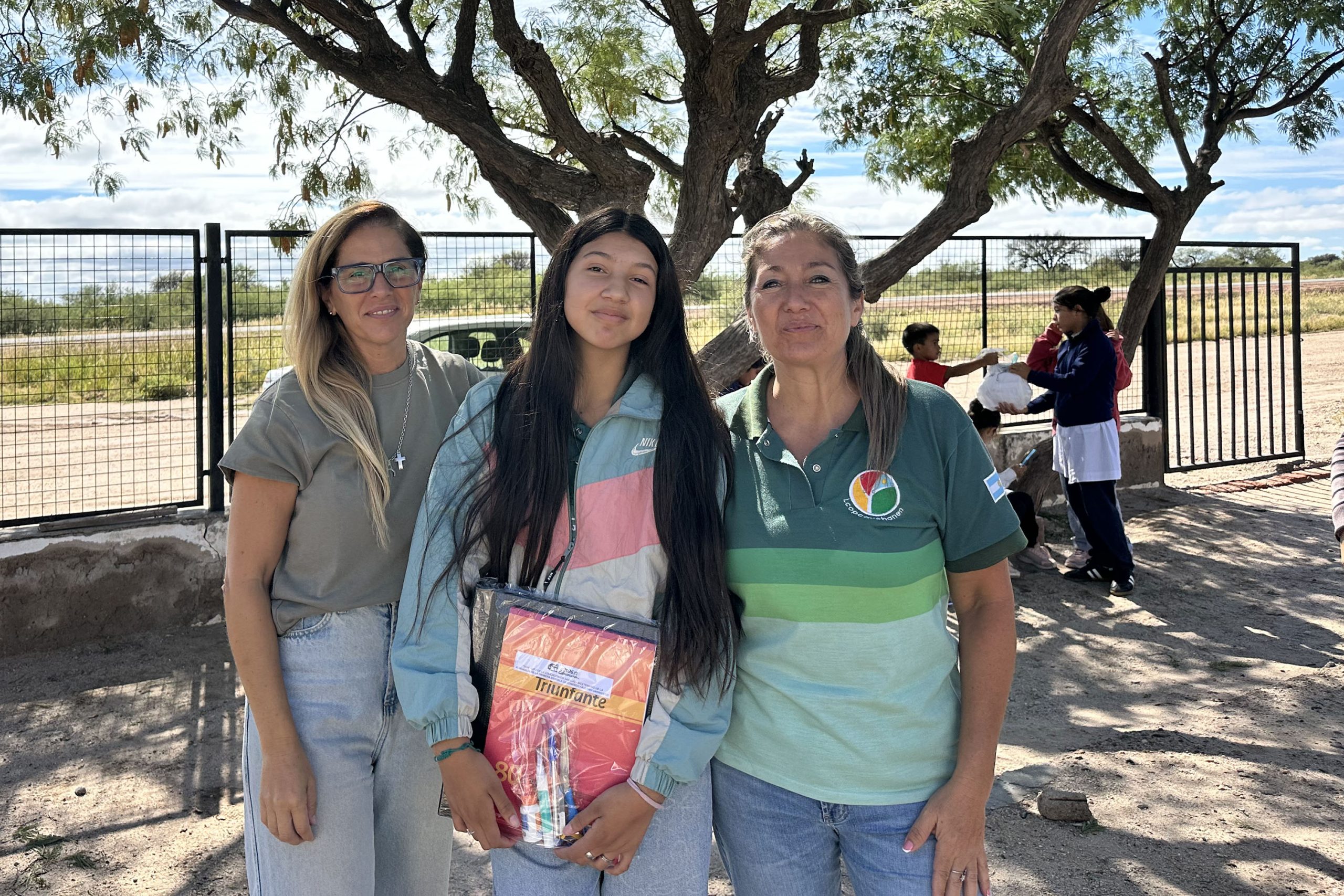 Enviados del Gobierno provincial llegaron al paraje San Antonio para entregar los kits escolares a la institución Nº127 ‘San Lorenzo’. La directora y docente, Carina Sosa, junto con los 21 alumnos del nivel Inicial, Primario y Secundario, recibieron la visita con alegría.
