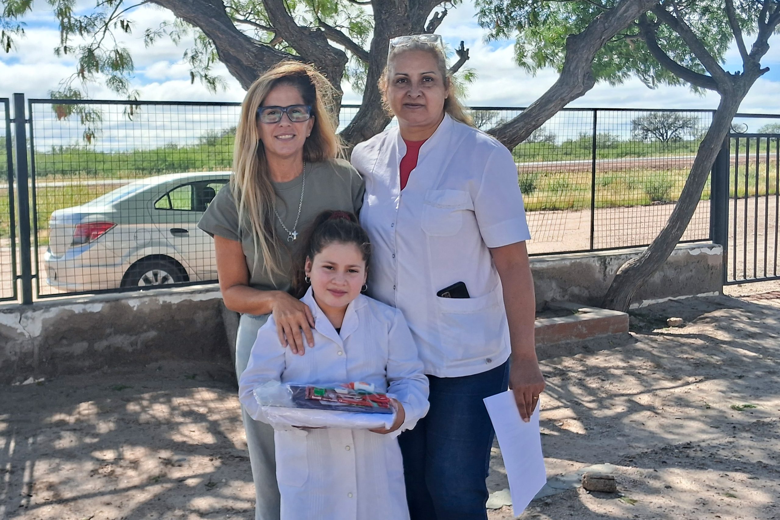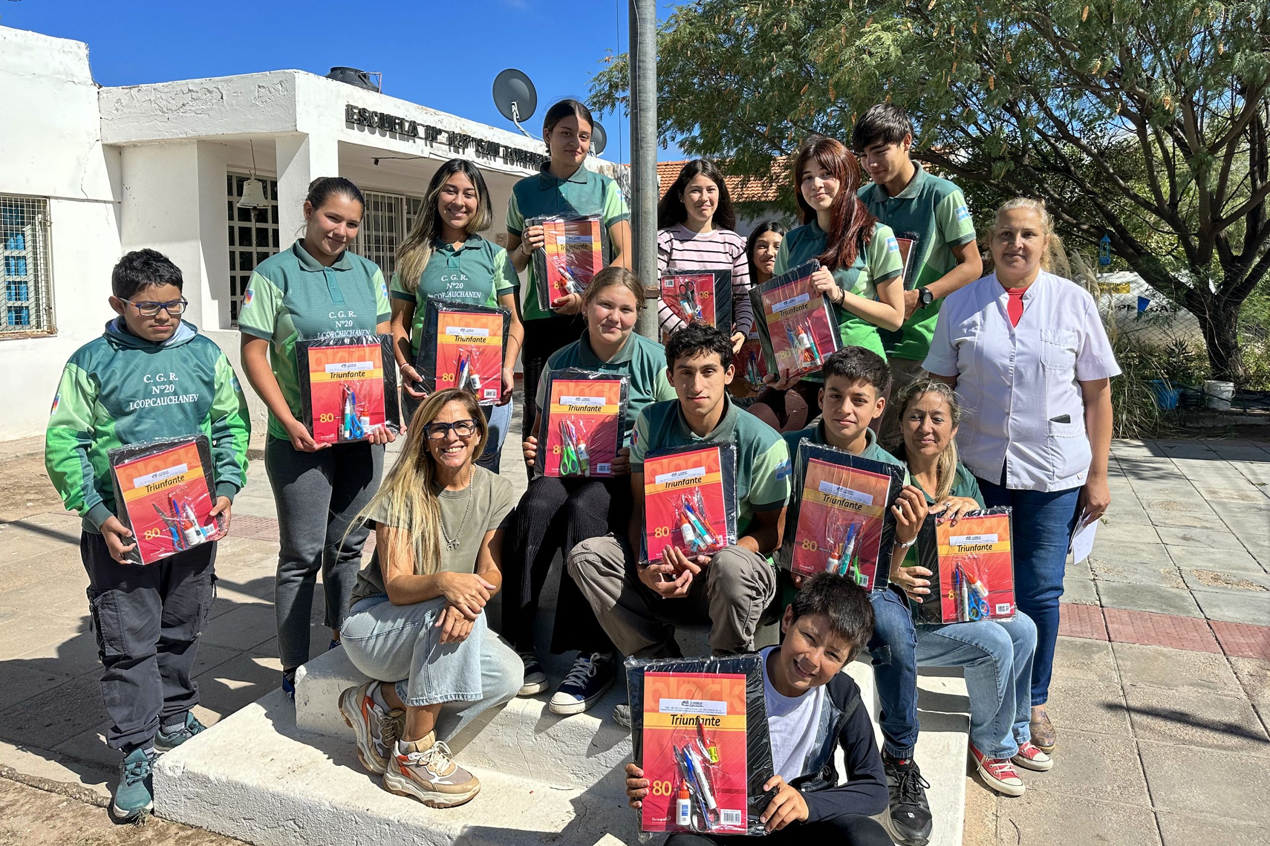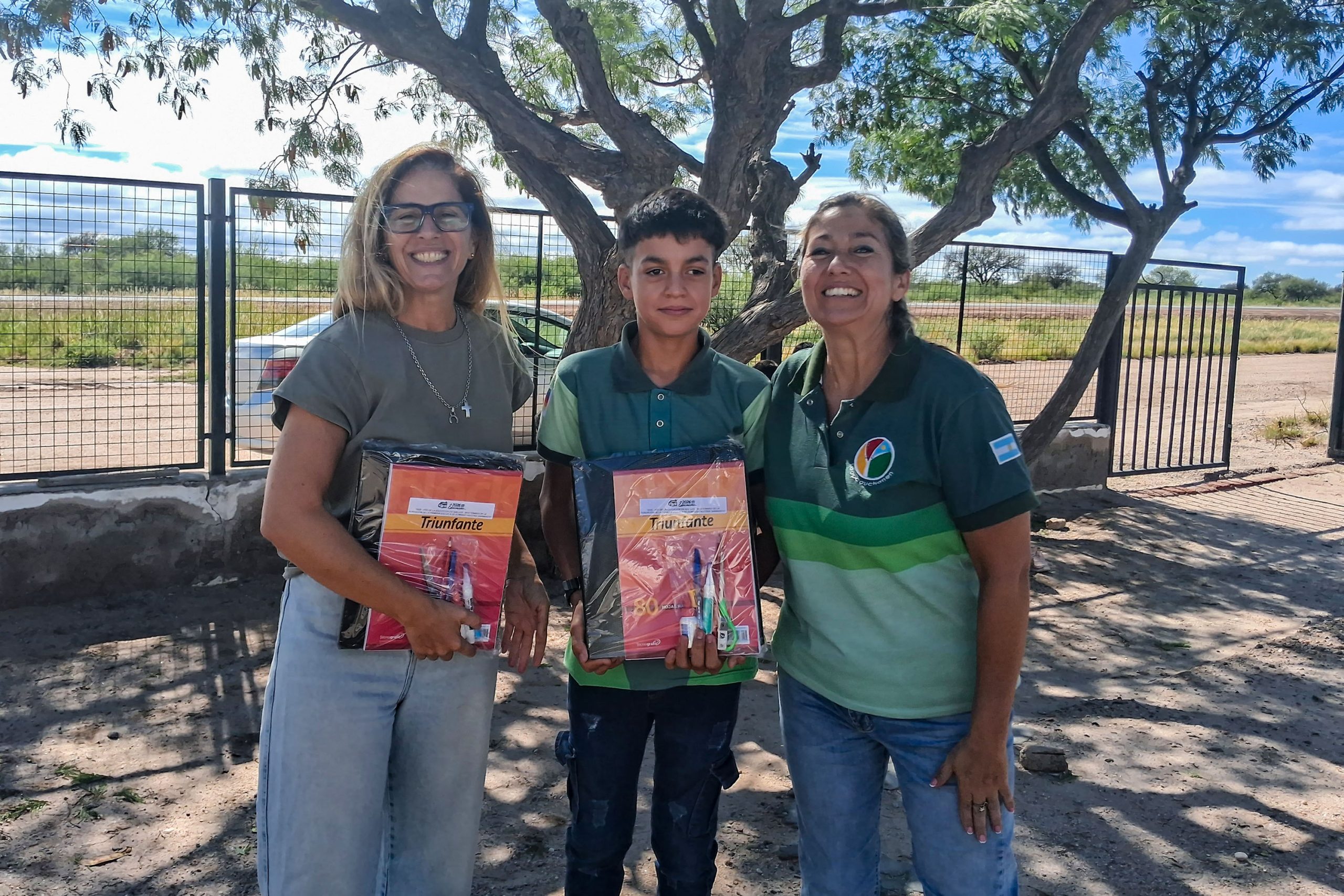 Enviados del Gobierno provincial llegaron al paraje San Antonio para entregar los kits escolares a la institución Nº127 ‘San Lorenzo’. La directora y docente, Carina Sosa, junto con los 21 alumnos del nivel Inicial, Primario y Secundario, recibieron la visita con alegría.