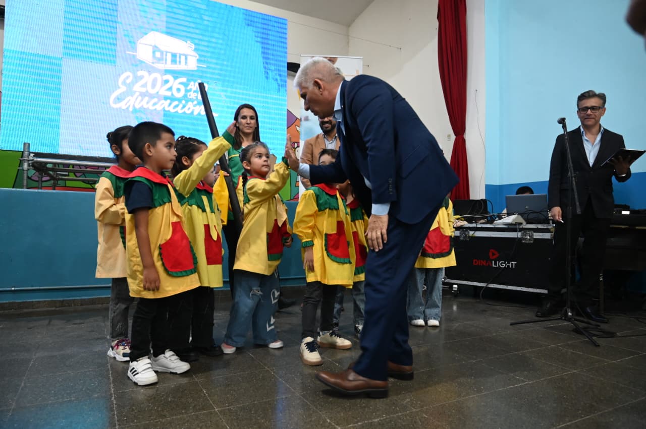 Durante la Gira Educativa de este jueves, el Gobierno reconoció a los alumnos de los niveles Inicial, Primario y Secundario del Centro Educativo N°18 ‘César Rosales’ de San Martín, por haber participado de diferentes disciplinas en los Intercolegiales Culturales 2025. El acto fue encabezado por el gobernador Claudio Poggi y su comitiva en el SUM del establecimiento educativo.
