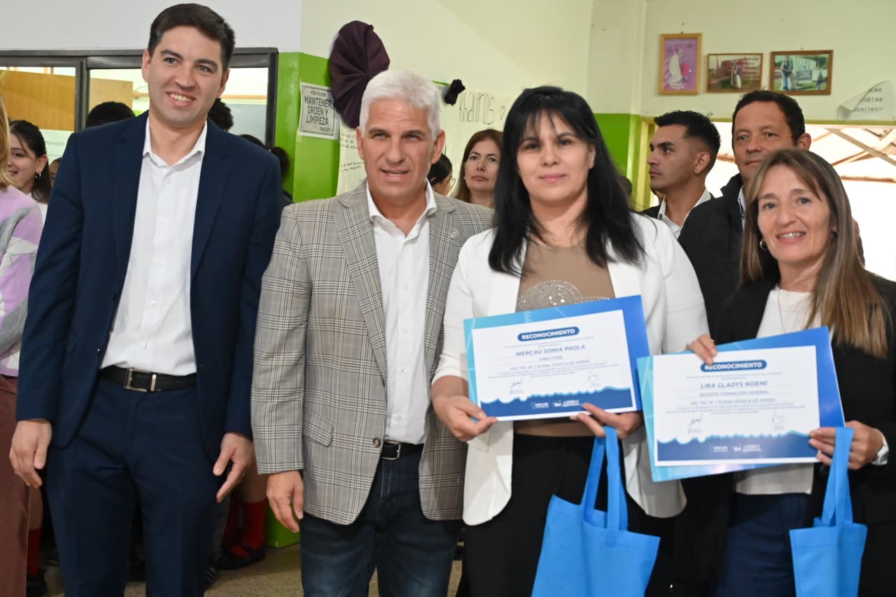 En el primer caso, la distinción fue para la directora de la Escuela Técnica N°1 ‘Elena Ossola de Horas’, Paola Mercau, y la regente de Formación General, Gladys Lira. Luego, también fue reconocida Mariela Rojo, directora de la escuela de Nivel Inicial ‘Senderitos del Valle’.