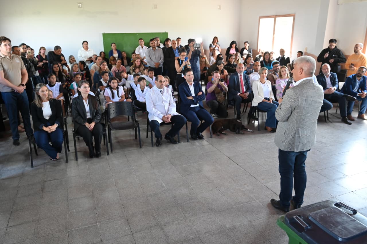 El gobernador Claudio Poggi encabezó el acto, que contó con el acompañamiento entusiasta de toda la comunidad educativa por la visita del Primer Mandatario. “Me van a ver seguido por las escuelas, porque me siento muy cómodo”, le comentó a los padres, docentes, alumnos y directivos que lo escucharon atentamente.