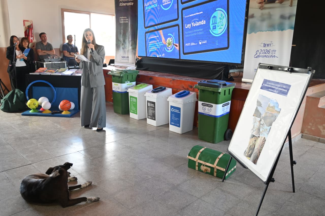 La directora de Planificación y Coordinación General, María Pérez Cubero, fue la encargada de presentar los alcances de la Escuela Ambiental Itinerante para el ciclo 2026. “Es una política interinstitucional, porque lo compartimos con otras dependencias del Gobierno, pero fundamentalmente es transgeneracional, porque apuntamos a formar las generaciones presentes y plantar una semilla de conciencia para el futuro del medioambiente”, expresó.