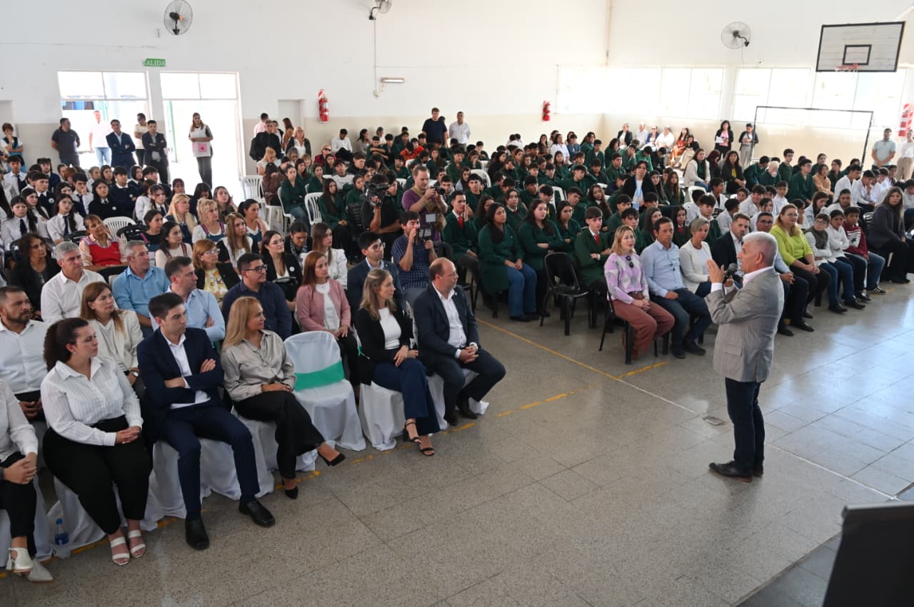 El Director también invitó a los estudiantes a reflexionar sobre el impacto que tienen hoy las tecnologías en la vida cotidiana porque “hace 200 años Sarmiento enseñaba en un rancho humilde con un ábaco de madera”. Y planteó: “Hoy tenemos en nuestros bolsillos una herramienta mil veces más potente que la que llegó a la Luna. La pregunta es qué vamos a hacer con ese poder”.