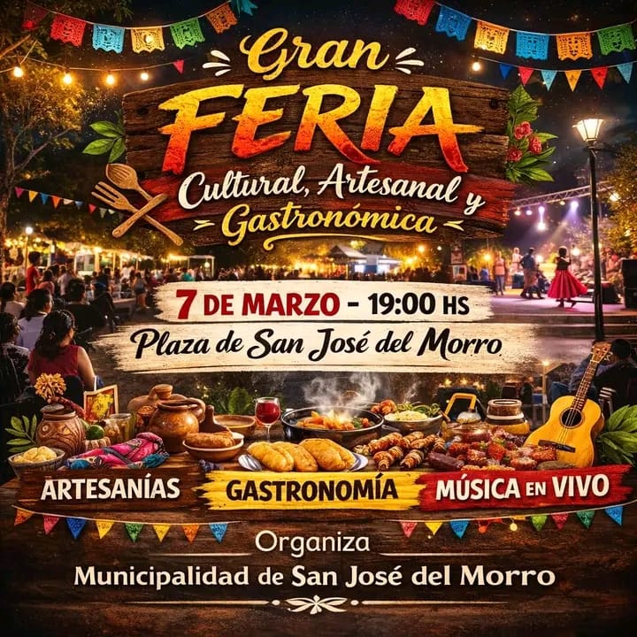 San José del Morro vivirá una noche especial con la realización de la Gran Feria Cultural, Artesanal y Gastronómica, un evento que reunirá a vecinos y turistas en torno a la producción local, la música y la tradición. La cita será el sábado 7 a las 19:00 en la plaza Brigadier General Juan Esteban Pedernera, donde se desplegará una propuesta integral pensada para toda la familia.
