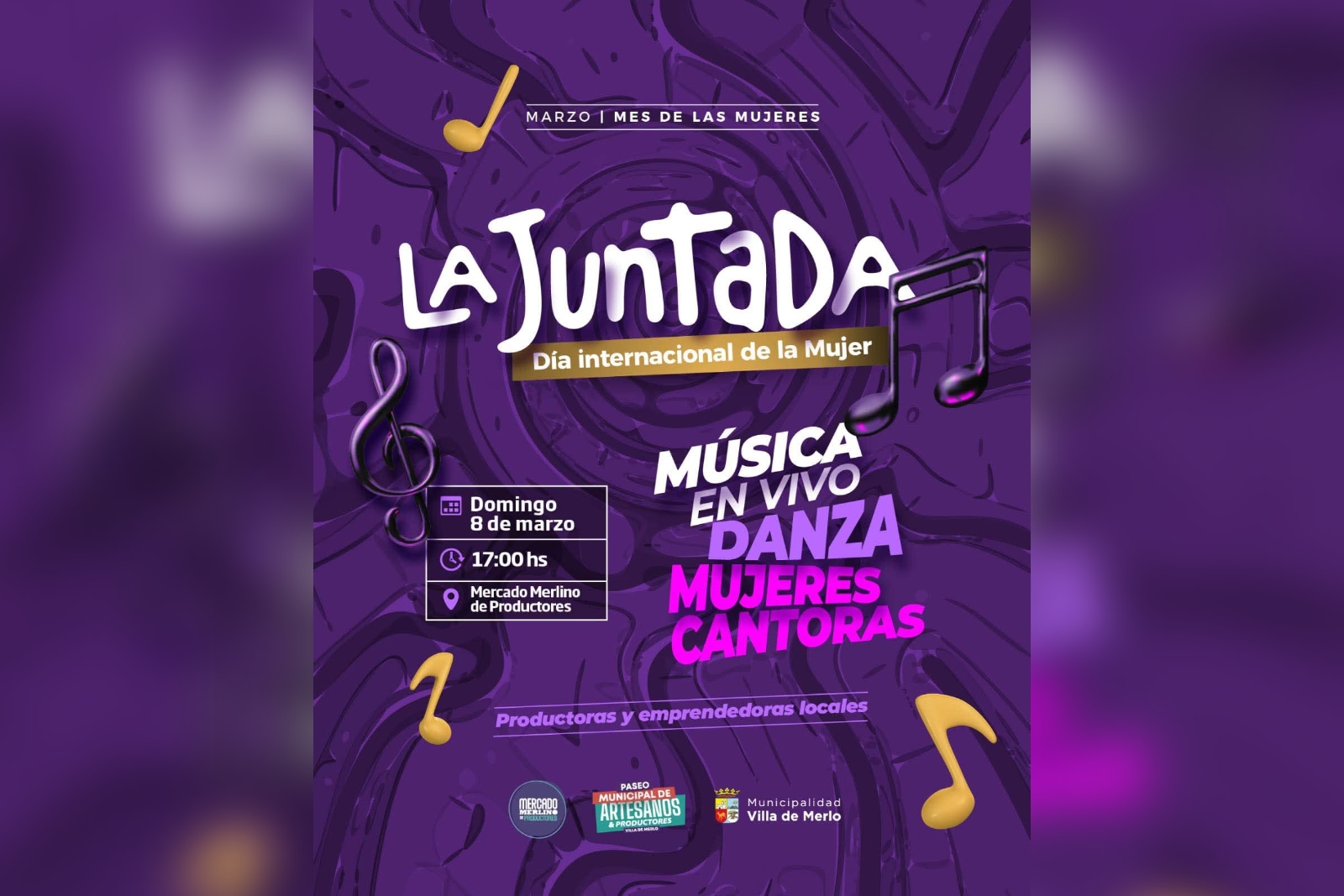 El evento se llevará adelante el próximo domingo 8 de marzo en el Mercado Merlino de Productores. La jornada contará con música en vivo, intervenciones artísticas y stands de emprendedoras locales.