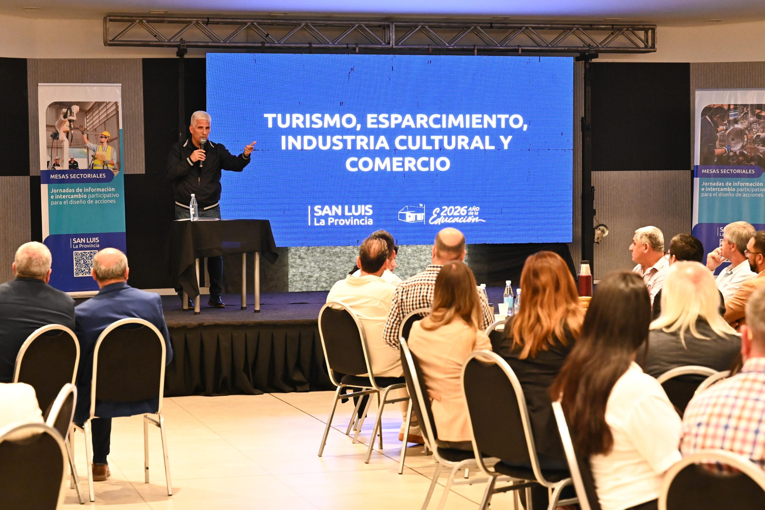 “Hoy, formalmente, damos el puntapié inicial, independientemente de que nos hemos ido encontrando en reuniones más chicas, a lo que hemos dado a llamar la Mesa Sectorial Provincial del Sector Turístico, de las Industrias Culturales, del Comercio y de todos los servicios asociados de toda la provincia de San Luis. Ya venimos haciendo mesas sectoriales en los últimos cuatro sábados. Ésta es la quinta, con jornadas como ésta, participativa, de intercambio. Los que estamos presentes somos los que, de una manera u otra, nos vinculamos al sector del turismo: prestadores privados, sector público provincial y municipal y las universidades”, contó .