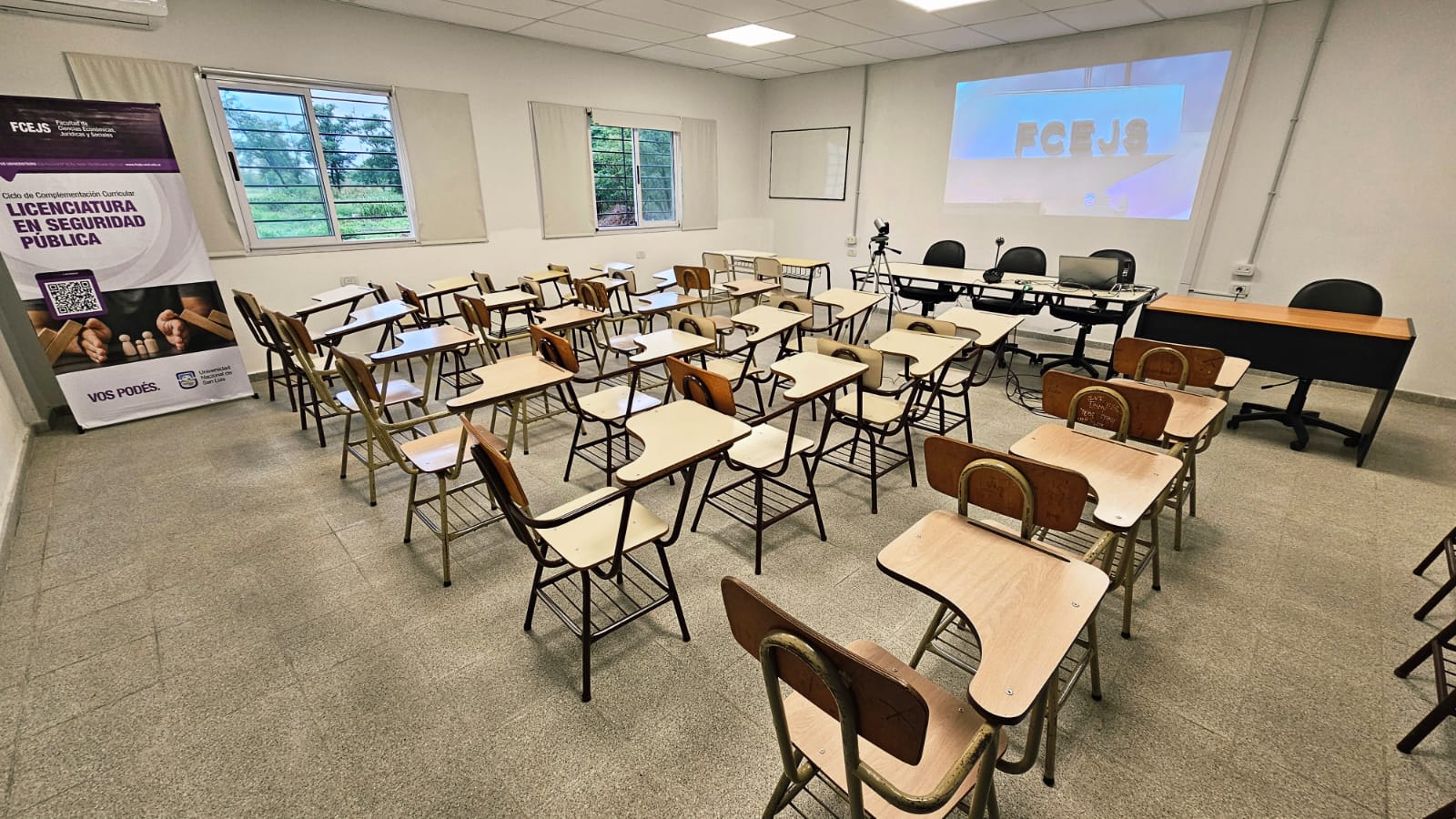 La Facultad de Ciencias Económicas, Jurídicas y Sociales (FCEJS) incorporó un aula inteligente en el Campus Universitario de Villa Mercedes de la Universidad Nacional de San Luis (UNSL), destinada al dictado de la licenciatura en Seguridad Pública.