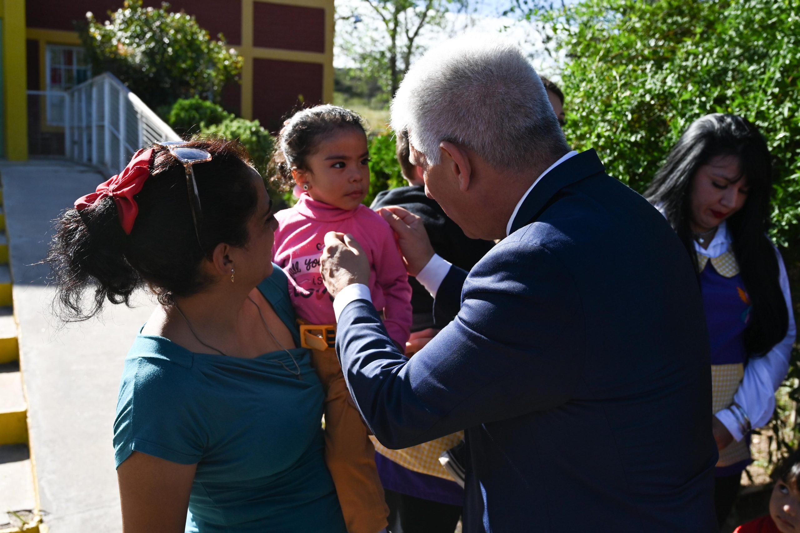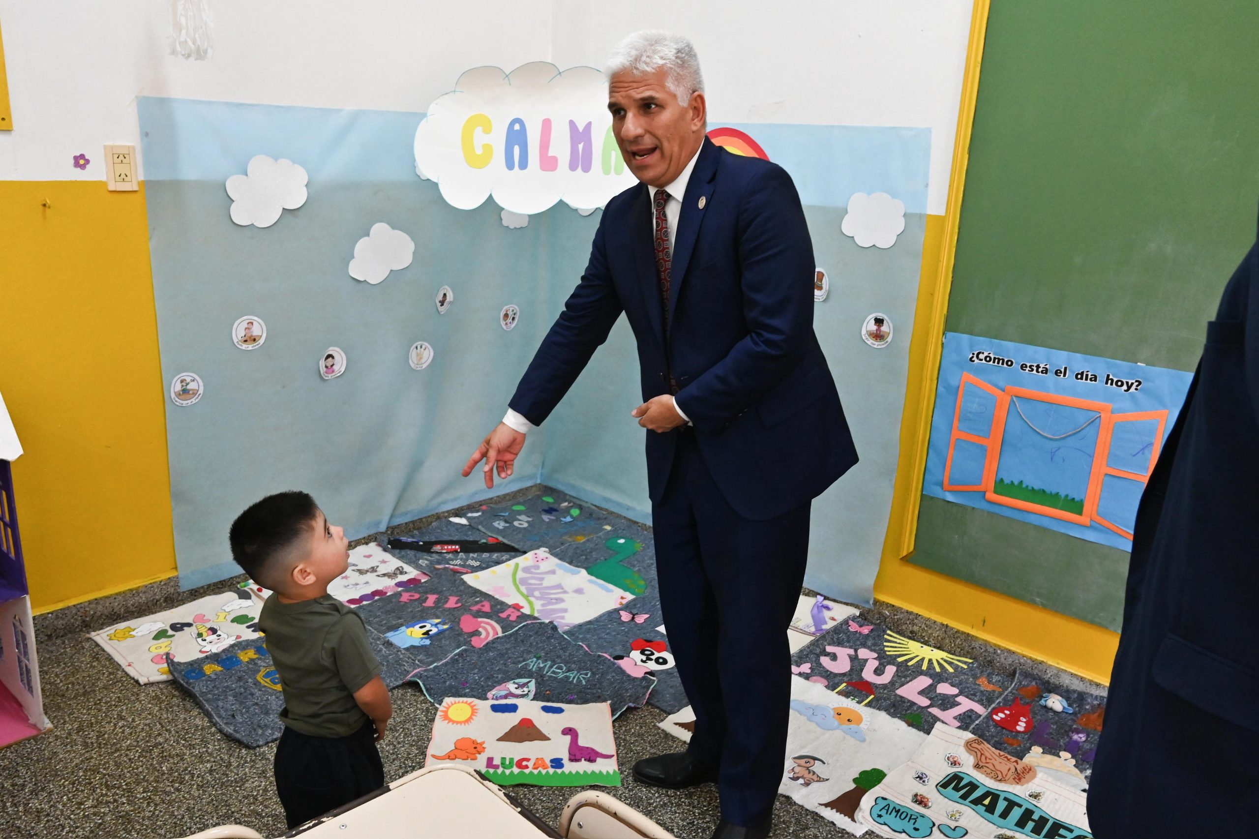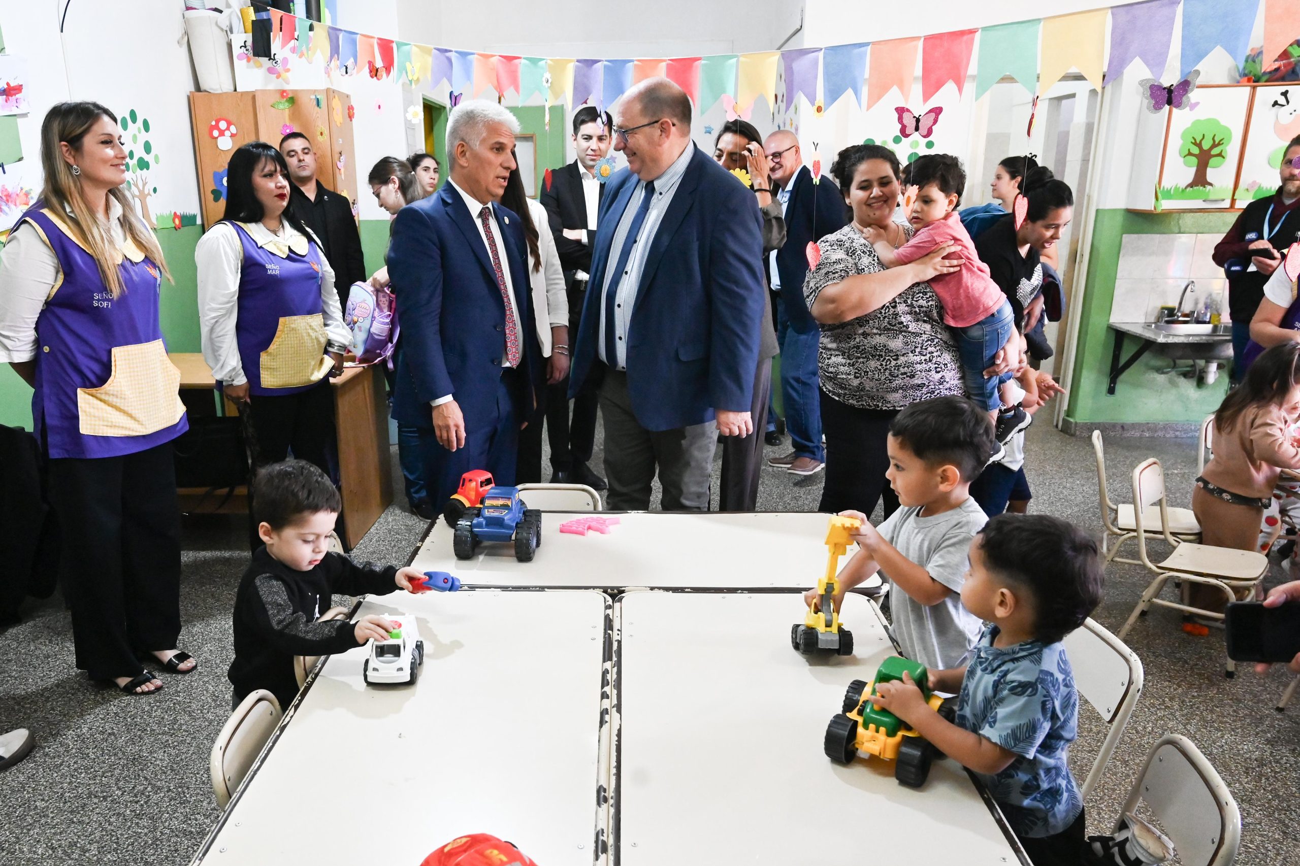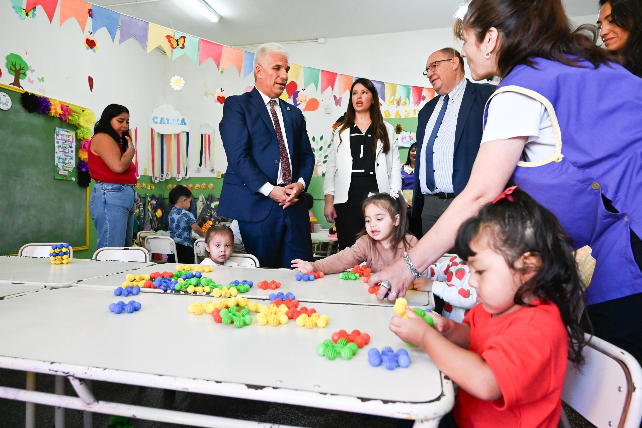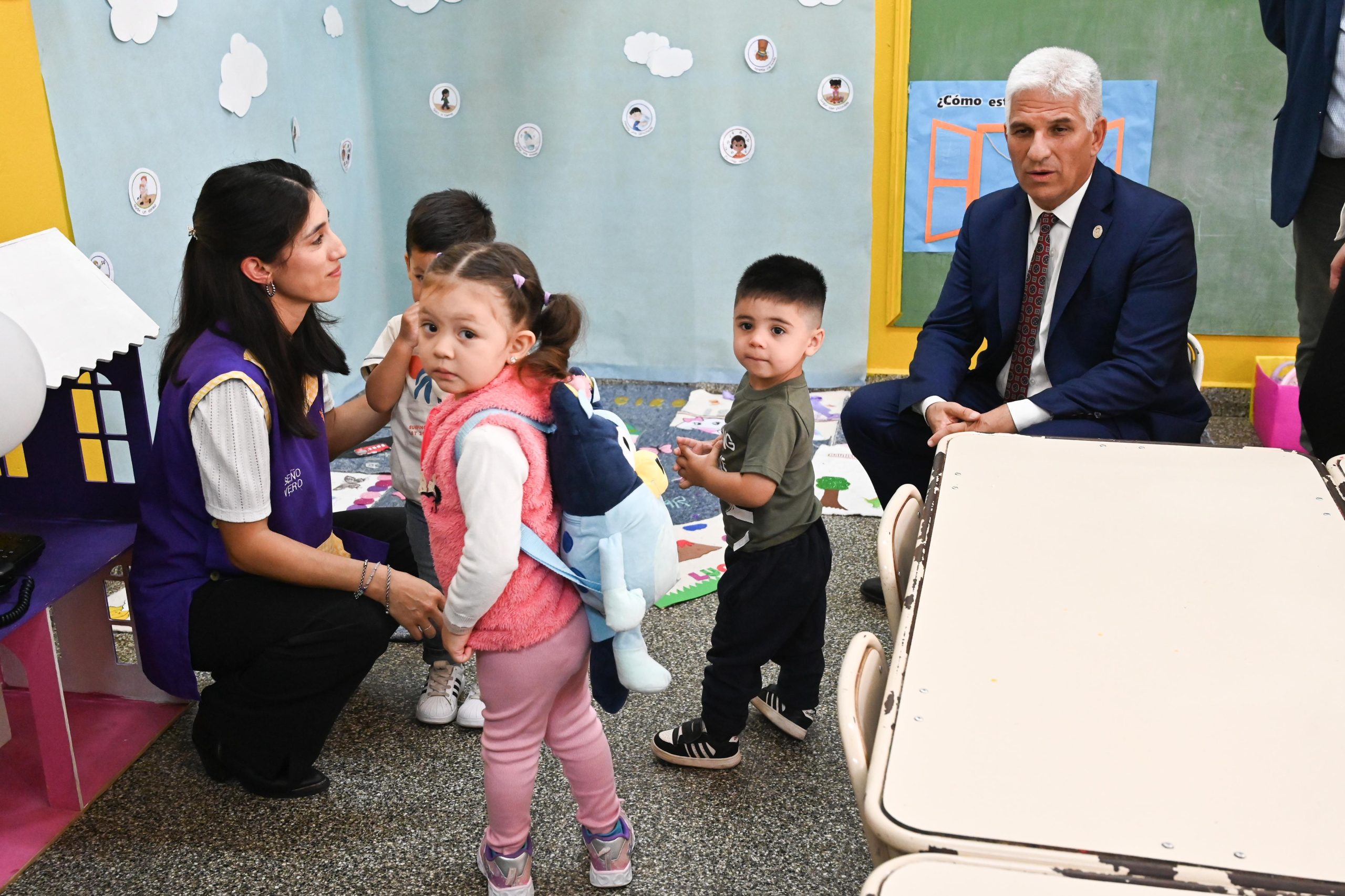 Tras el descubrimiento de placa y desatado de cintas, la comitiva de Gobierno y la comunidad educativa recorrieron cada salita, donde los niños ya habían comenzado sus actividades. Poggi se sentó y jugó con ellos, bromeó, le agradeció por su labor a cada docente y les pidió cariño y responsabilidad en el cuidado de los chicos.