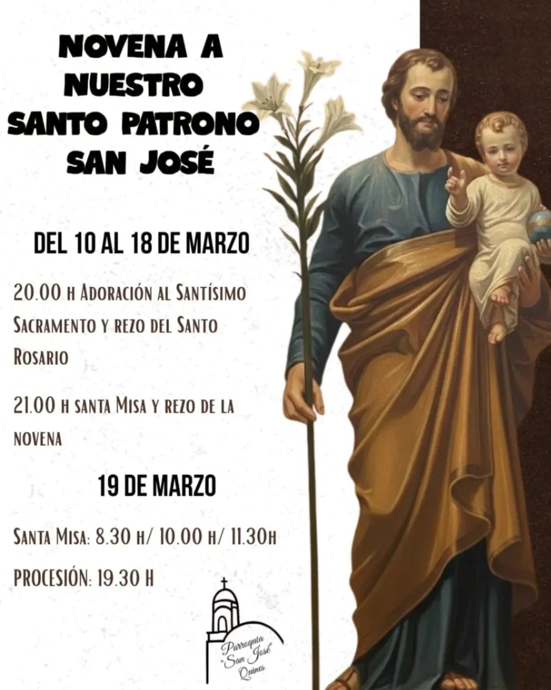 El día más esperado será el 19 de marzo, jornada dedicada a San José, cuando se realizarán celebraciones litúrgicas durante la mañana y, por la tarde, tendrá lugar uno de los momentos más emotivos: la tradicional procesión con la imagen del Santo Patrono por las calles del pueblo. La misma partirá a las 19:30, acompañada por fieles, familias y visitantes que cada año se suman a esta manifestación de fe popular.