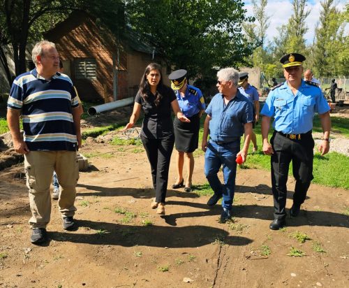 Durante la mañana de este miércoles, la ministro de Seguridad, Nancy Sosa; el jefe de la Policía de la provincia, Juan Carlos Serrano y el jefe de la Unidad Regional de Orden Público (UROP) N°2 de Villa Mercedes, Javier Verdú, entre otras autoridades, recorrieron el predio para constatar el avance de obra de la nueva Comisaría Seccional 8°. La visita también se realizó junto a los constructores responsables, quienes brindaron detalles técnicos sobre el desarrollo de la obra.