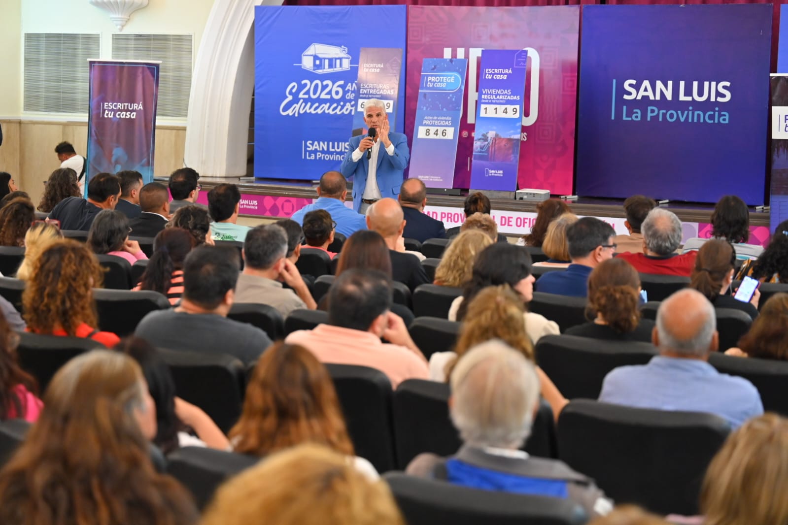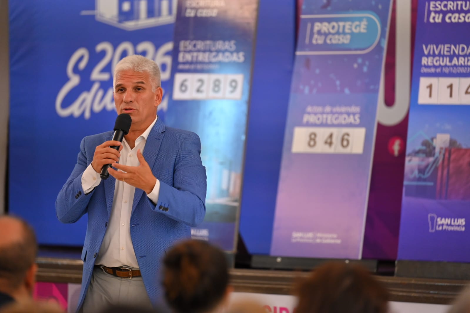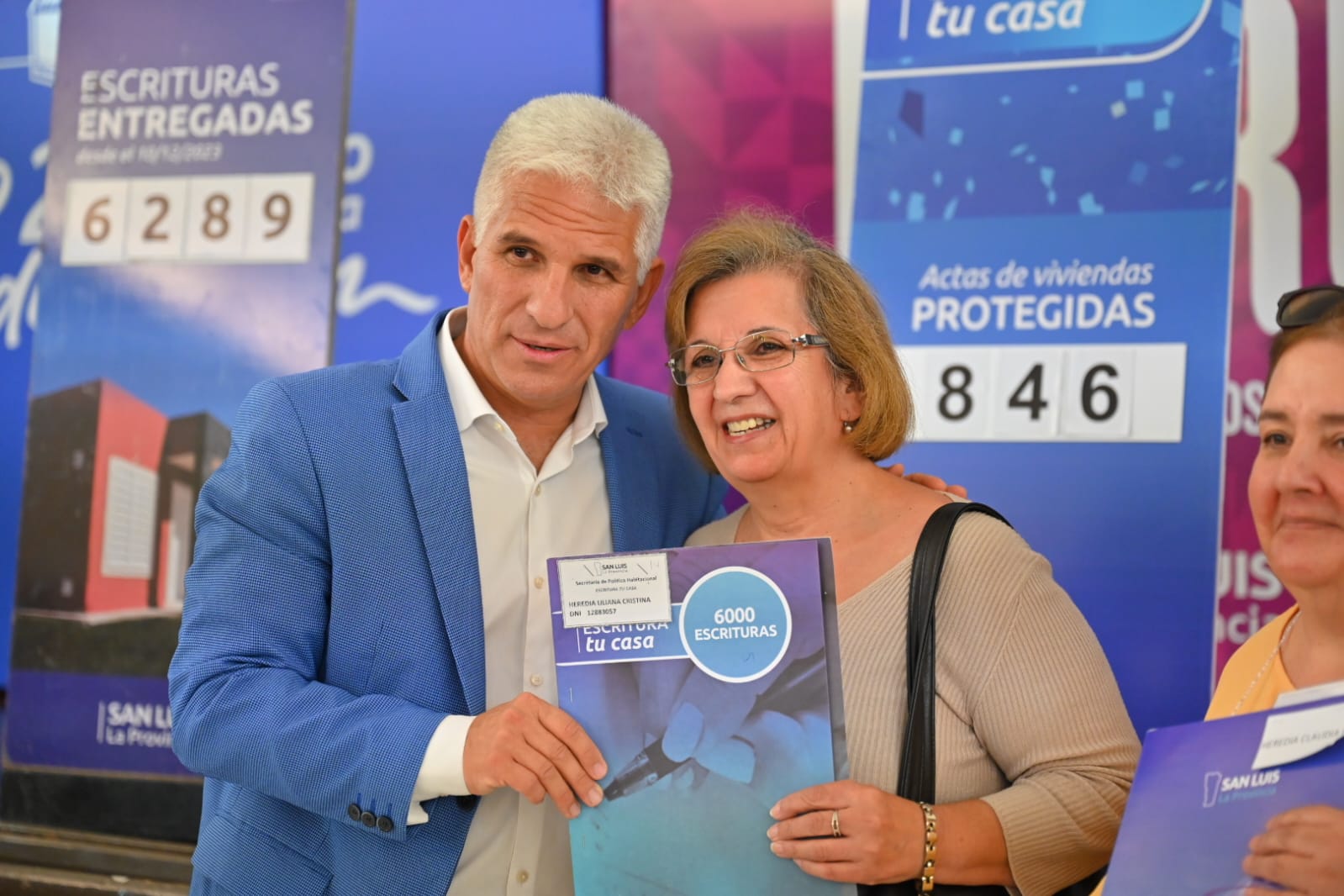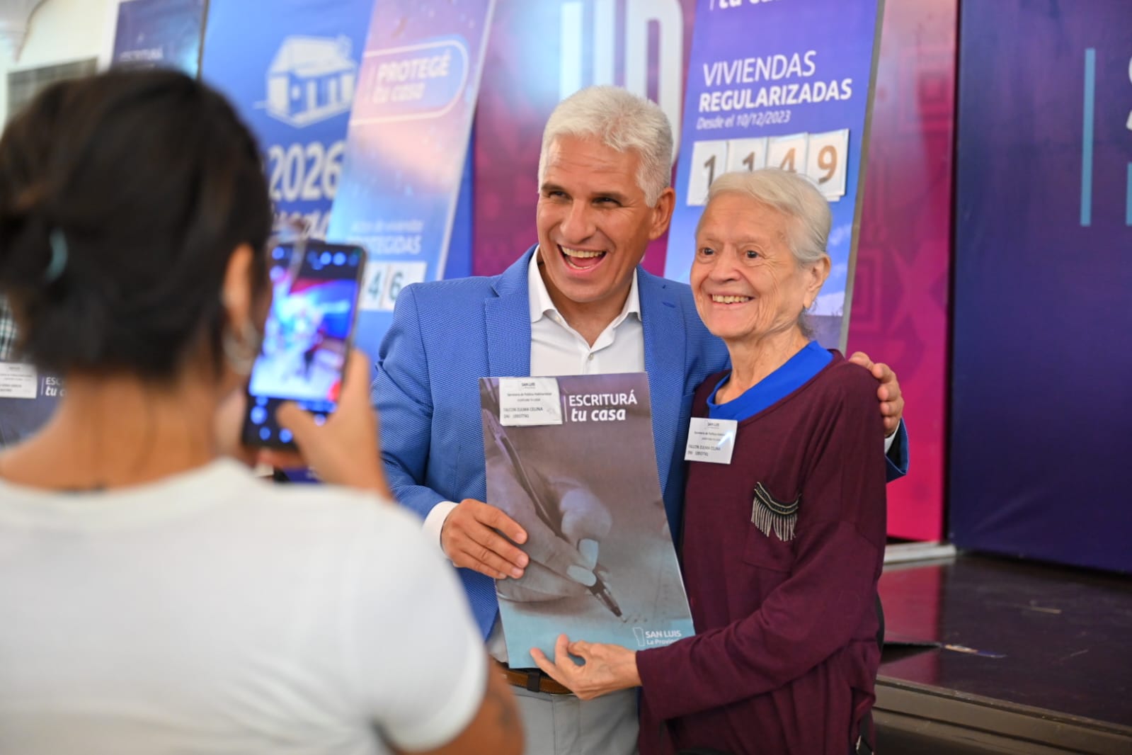 Este jueves, durante su visita a la ciudad de Villa Mercedes, el gobernador Claudio Poggi encabezó un acto donde más de 180 familias fueron beneficiadas por los programas habitacionales ‘Escriturá tu Casa’ y ‘Protegé tu Casa’, iniciativas que buscan garantizar la seguridad jurídica sobre la vivienda y resguardar el patrimonio familiar.