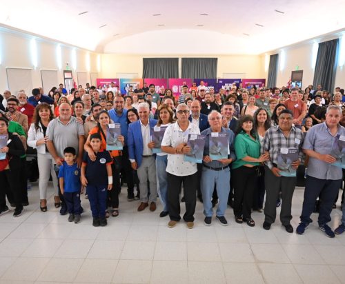 A través del Programa ‘Escriturá tu Casa’, el Gobierno entregó 161 escrituras, 14 actas de protección y 13 regulaciones dominiales. El acto, que fue encabezado por Claudio Poggi, se realizó en el teatro de la sede de la UPrO.