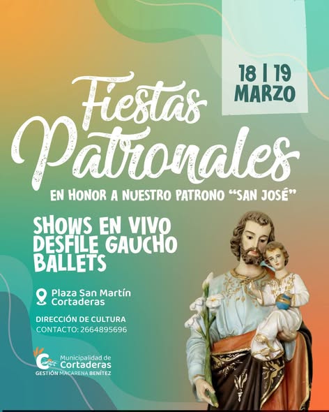 La localidad de Cortaderas se prepara para vivir una de sus celebraciones más significativas del calendario local: las Fiestas Patronales en honor a San José. El encuentro se realizará el 18 y 19 de marzo, con una propuesta que reunirá fe, cultura y música popular en un ambiente de encuentro familiar.