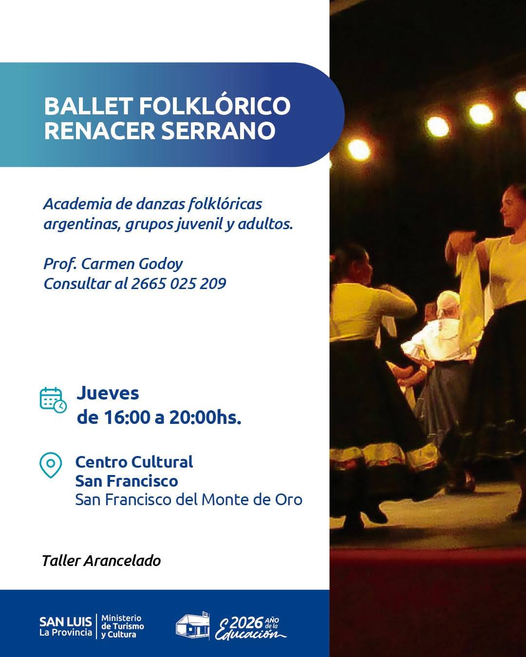 - Ballet Folclórico ‘Renacer Serrano’: jueves de 16:00 a 20:00.