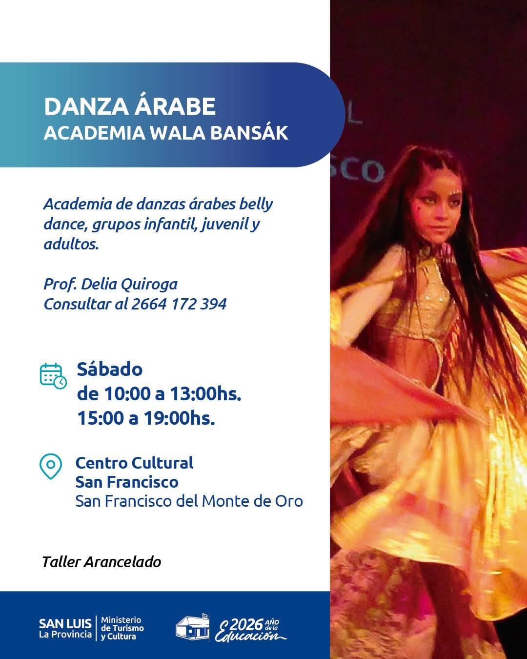 La programación del Centro Cultural de San Francisco incluye talleres y academias que se desarrollan durante toda la semana, con propuestas pensadas para niños, jóvenes y adultos. Entre ellas se destacan: