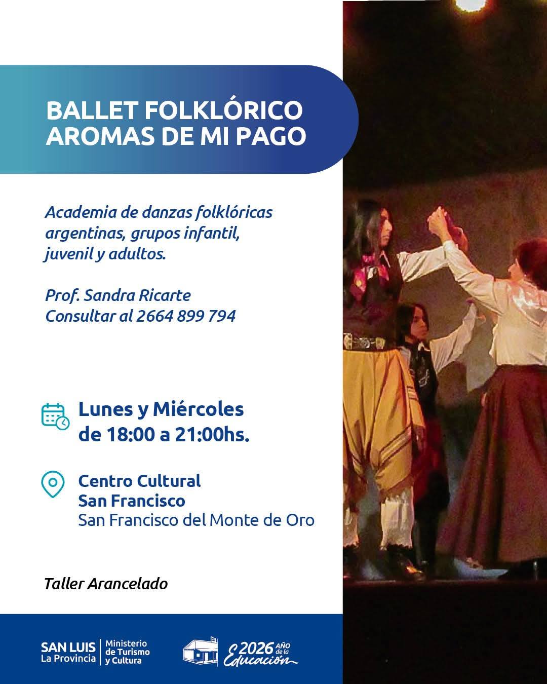 - Ballet Folclórico ‘Aromas de mi Pago’: lunes y miércoles de 18:00 a 21:00.