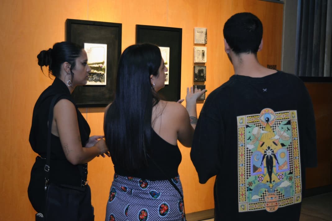La propuesta, bajo la curaduría de Romina Mateos, despliega una exploración diversa entre matices y texturas: acuarela sobre papel 100% algodón; antotipia con cúrcuma y café aplicada en hoja acuarelable de algodón; óleo sobre tela, y una técnica mixta que integra pintura asfáltica, óleo y acrílico sobre lienzo, entre otras.