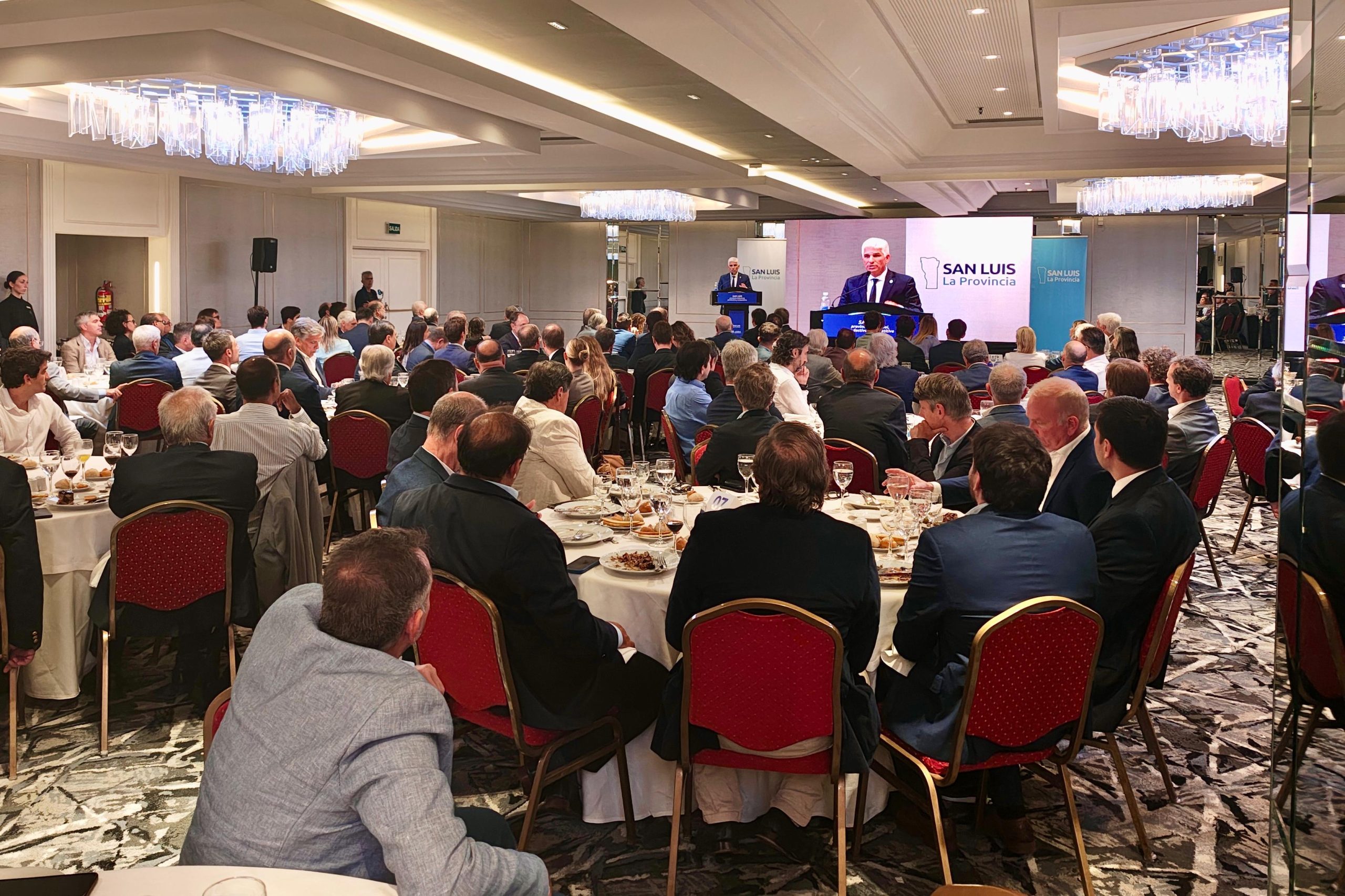 El gobernador Claudio Poggi, en su discurso ante propietarios, accionistas, directores y CEOs de empresas con intereses en San Luis, los calificó como “decisores” de las principales empresas de la actividad privada industrial, agroindustrial y de servicios conexos, “que por supuesto no solo tienen sus inversiones, o mejor dicho parte de sus inversiones en la provincia, sino que generan numerosos puestos de trabajo”.