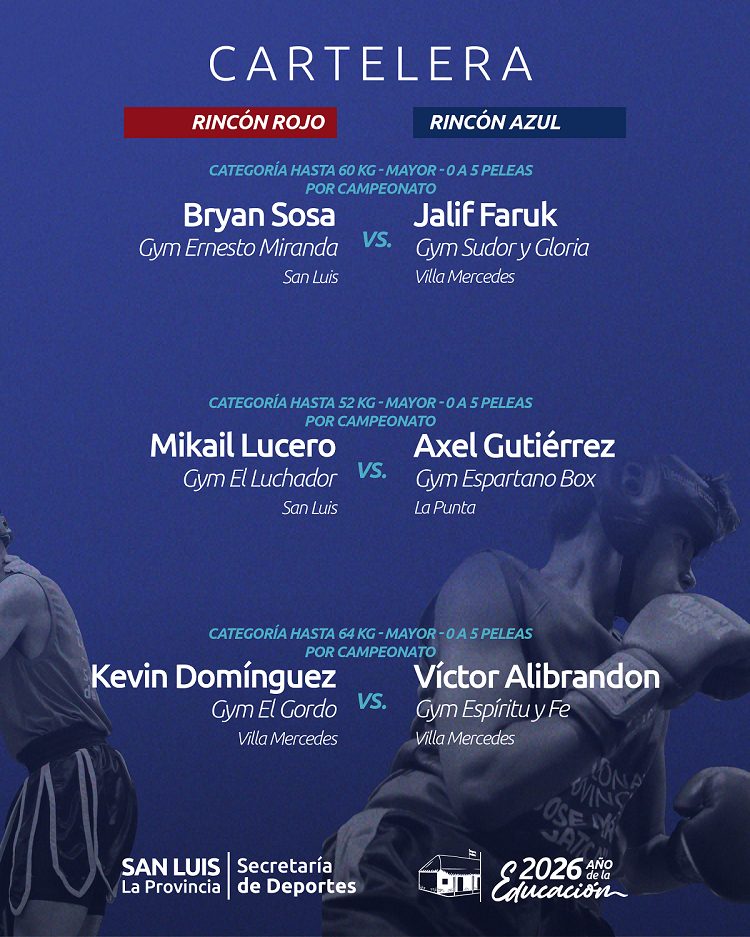 La jornada de este viernes incluirá combates en categoría Mayores, tanto masculinos como femeninos, y reunirá a púgiles de distintos puntos de la provincia. Además, anticiparon que San Luis tendrá una fuerte representación en el próximo campeonato nacional, con presencia en nueve de las diez categorías.